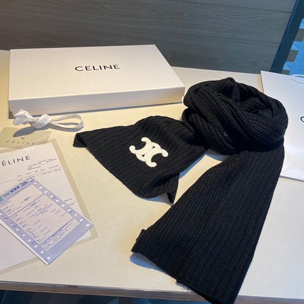 Celine Triomphe scarf replica ribbed cashmere 2AD96595T