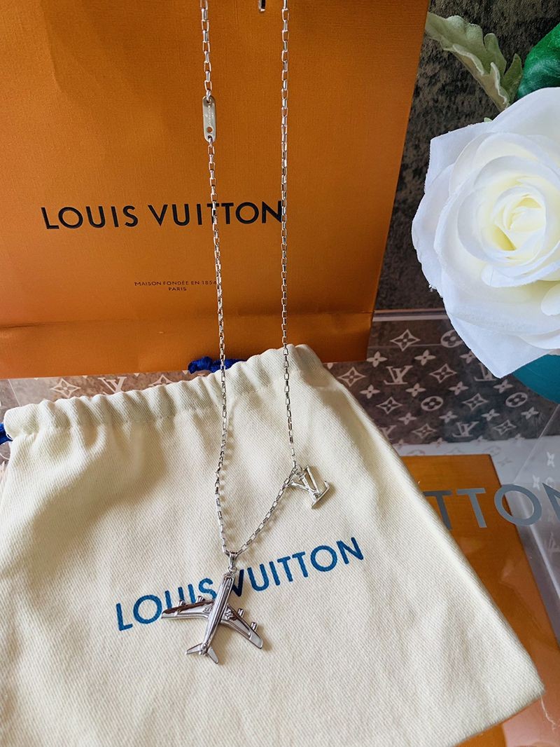 Louis Vuitton LV plane fake necklace plane silver necklace MP3157