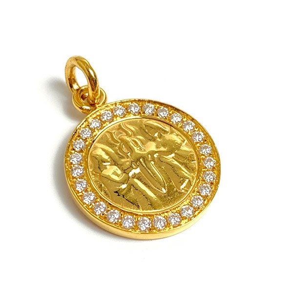 Coin-shaped pendant charm in elegant 22K gold colors.