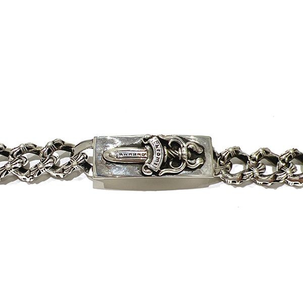 Chrome Hearts Double ID Floral Replica Dagger Old Silver Bracelet