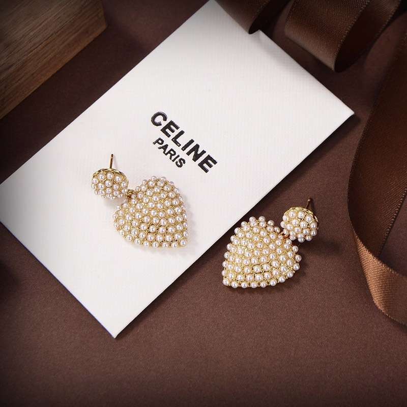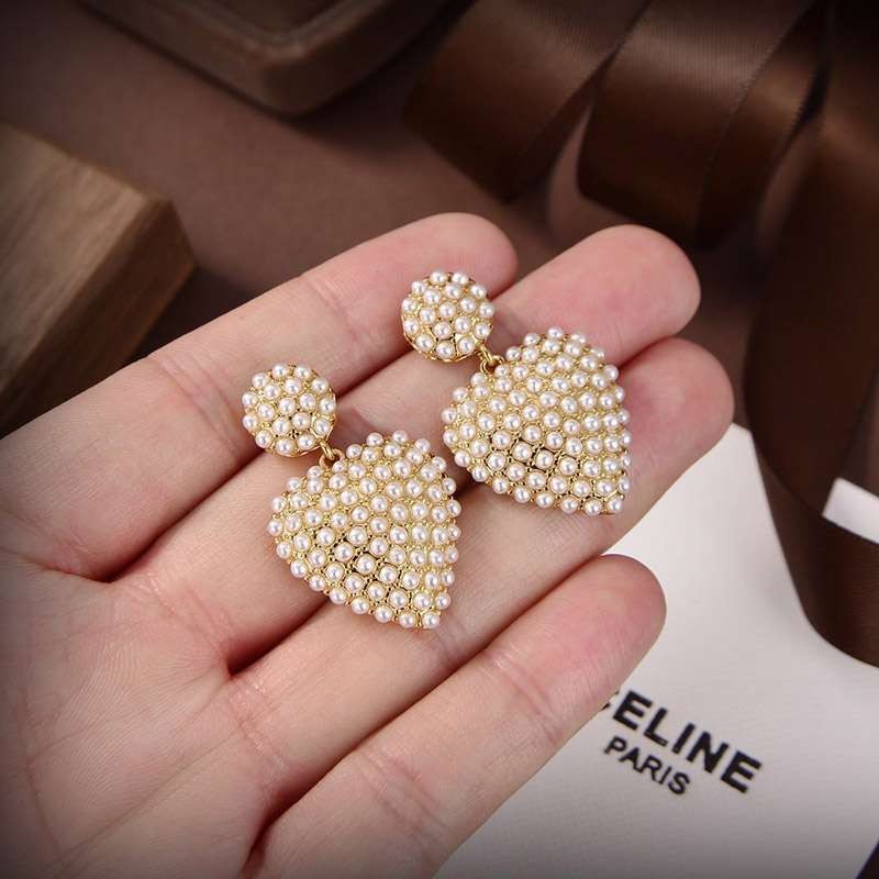 Celine Heart Glass Pearl Earrings replica