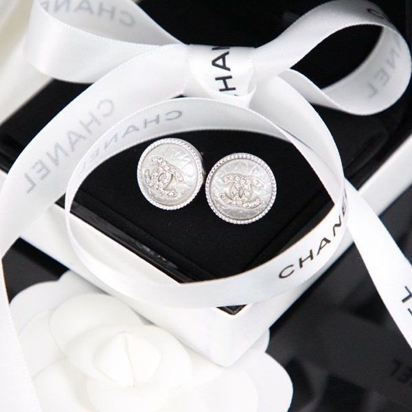 Chanel Metal Gold Crystal CC Logo Earrings Replica
