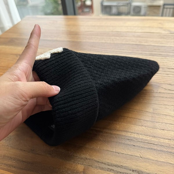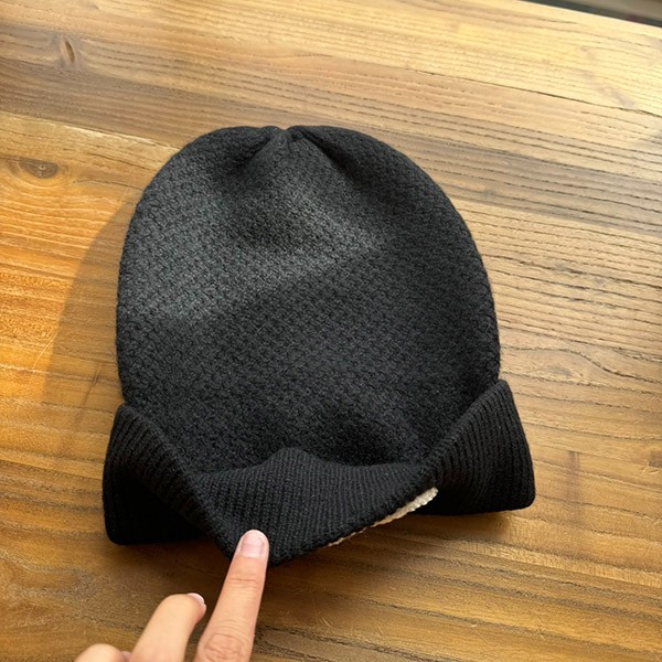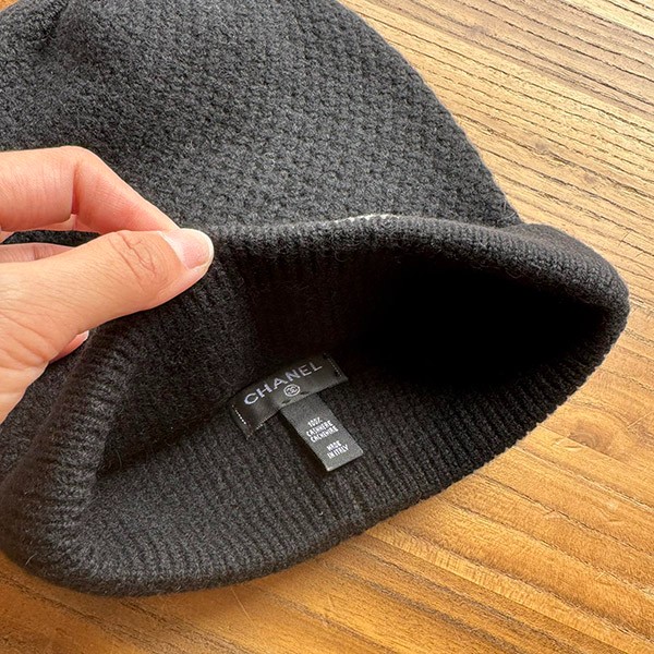 First come, first served! This is a Chanel black beanie.