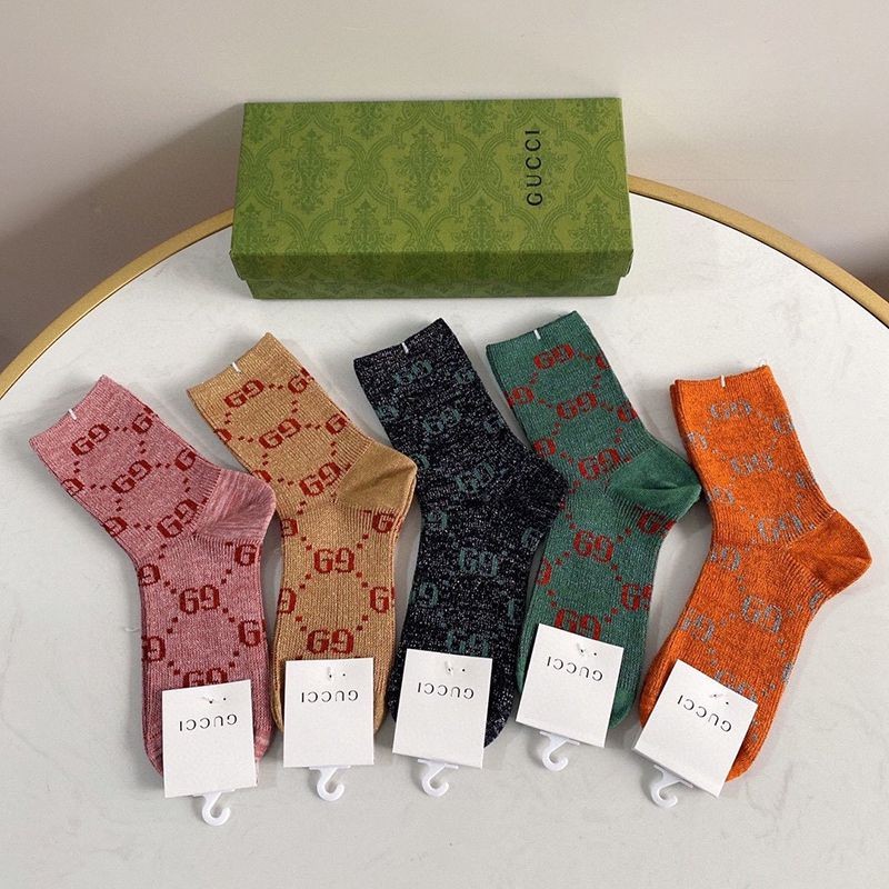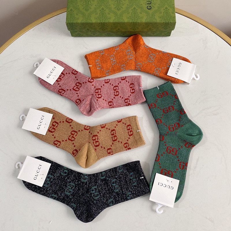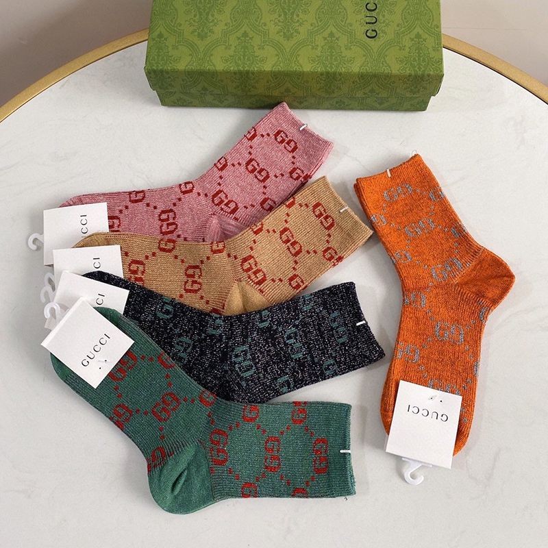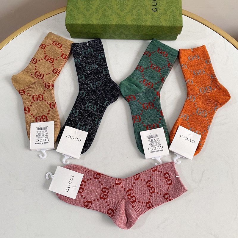Celebrity Favorite ☆ Gucci GG Web Stripe Cotton Socks Replica 5 Pair Set