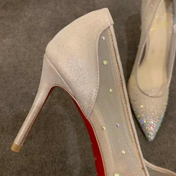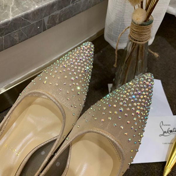 Louboutin Follies Strass Fake 100mm Nude High Heels