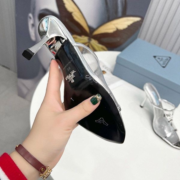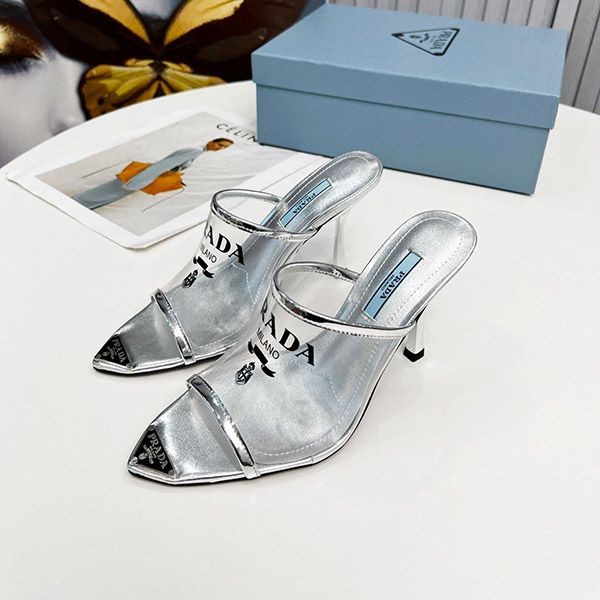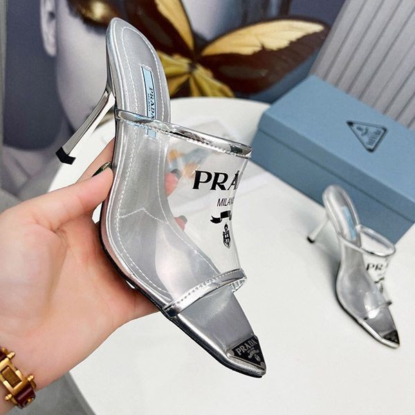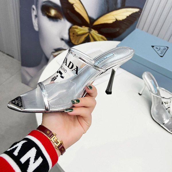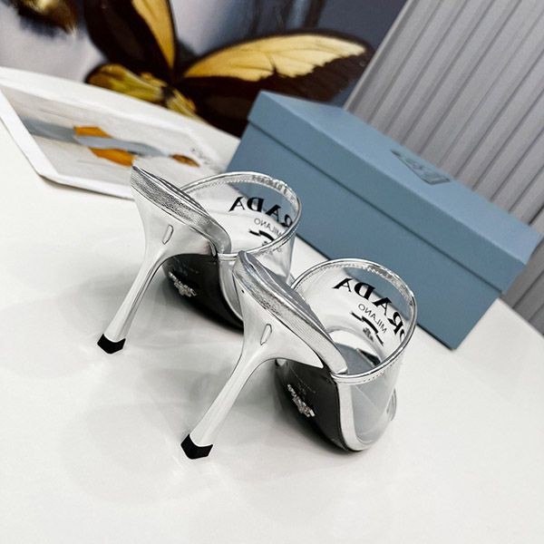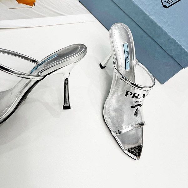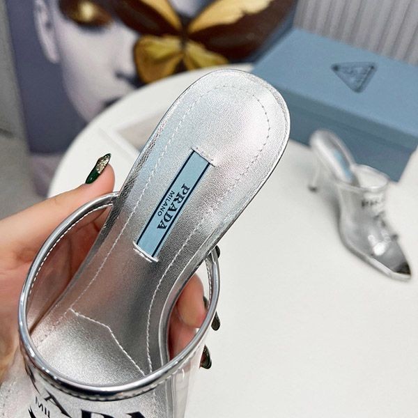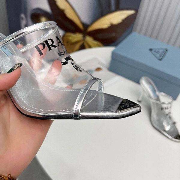 Prada logo print Plex high heel slide sandals replica