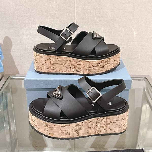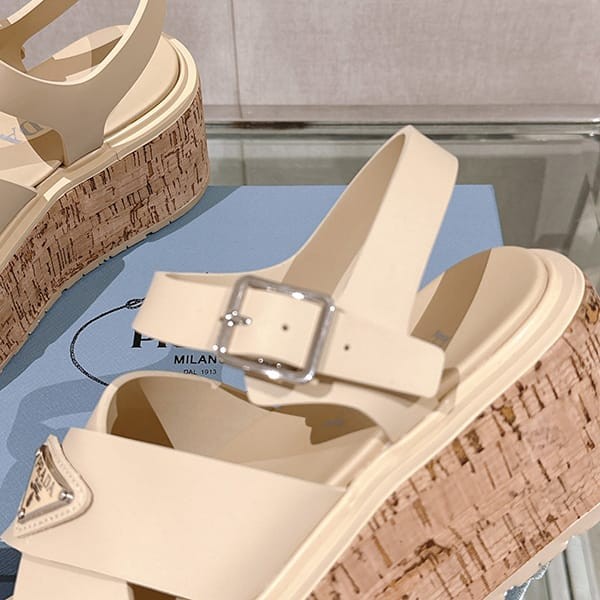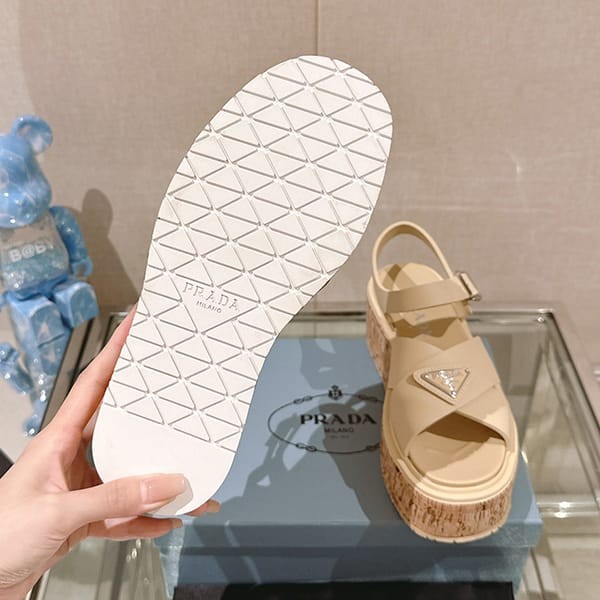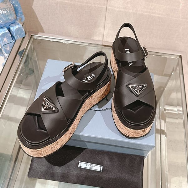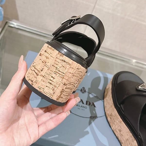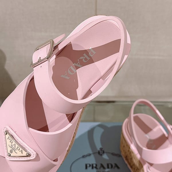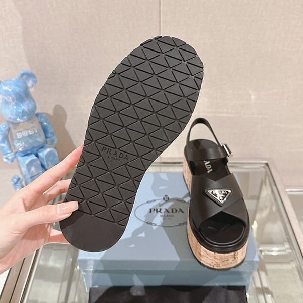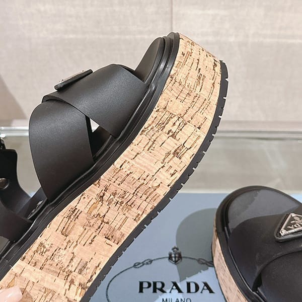 Fake Prada Women's Strap Sandals with Triangle Logo