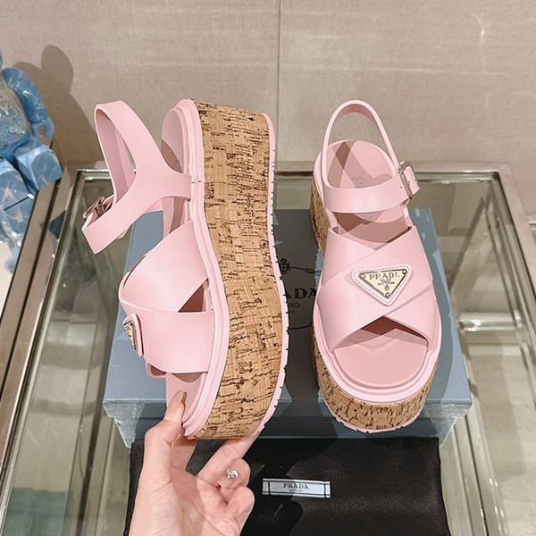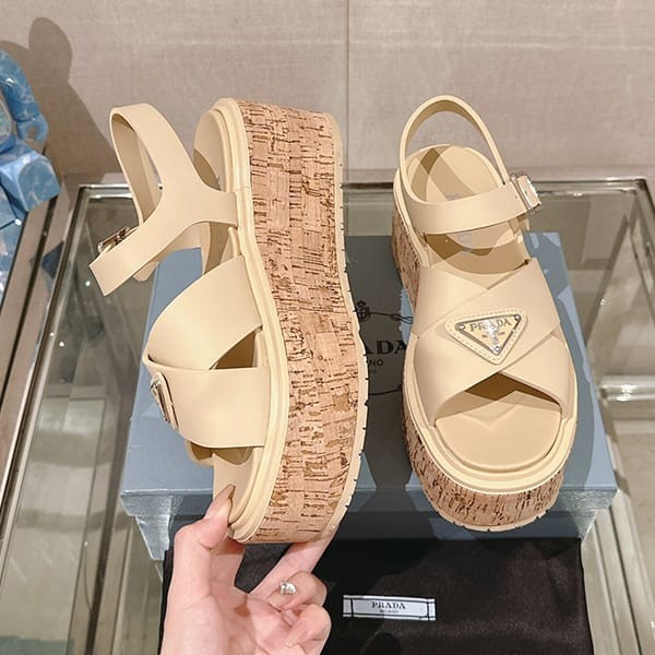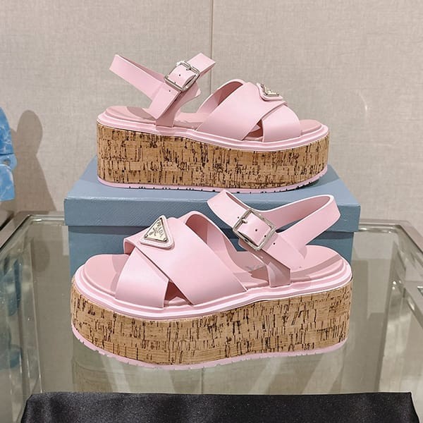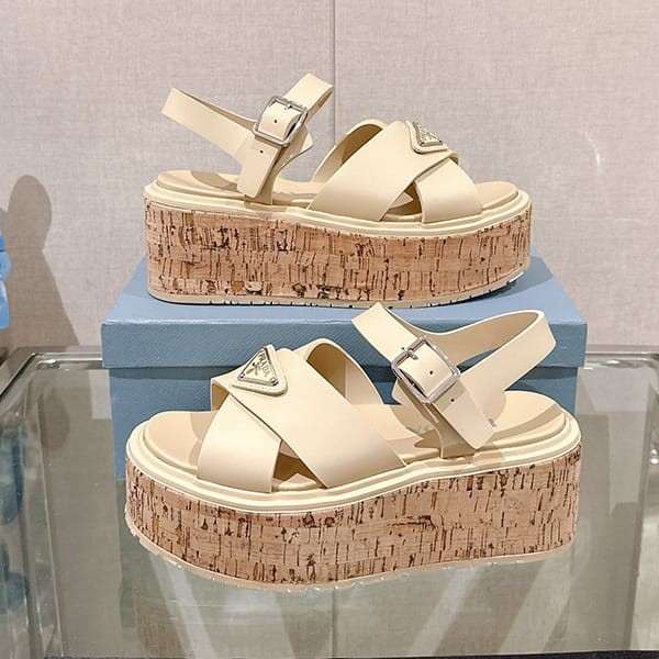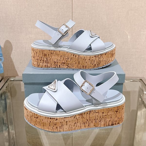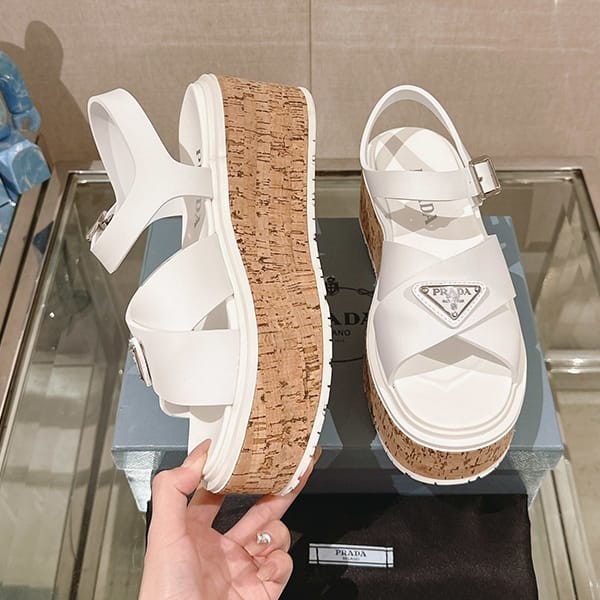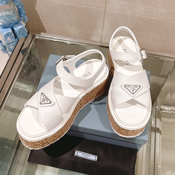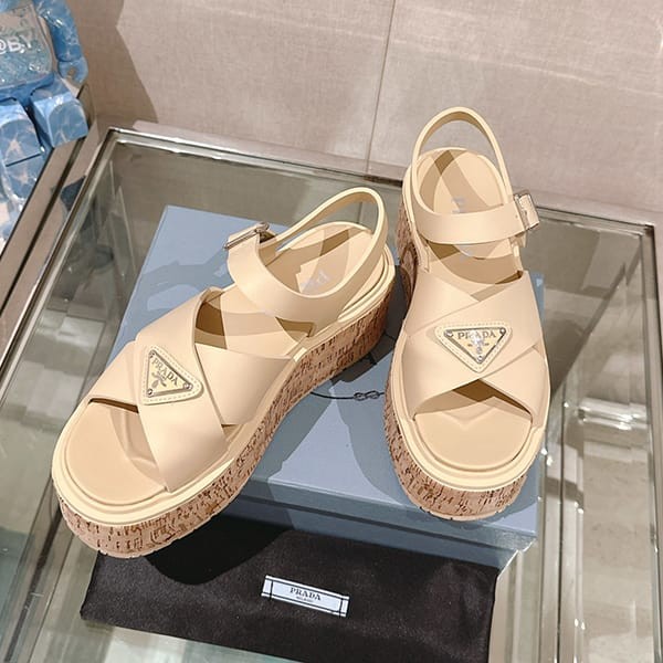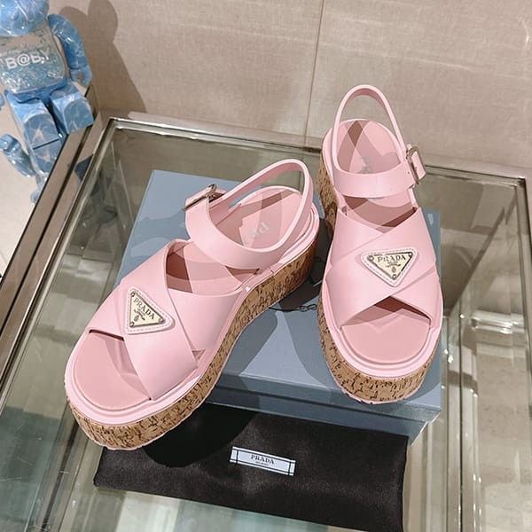 Fake Prada Women's Strap Sandals with Triangle Logo