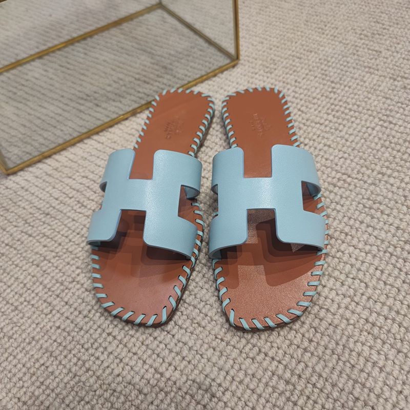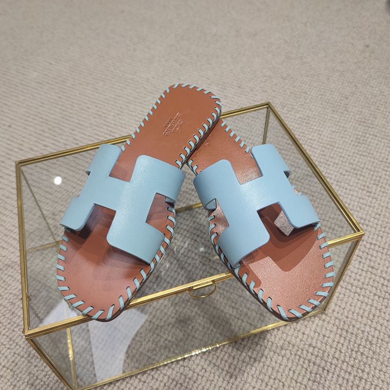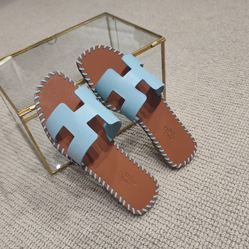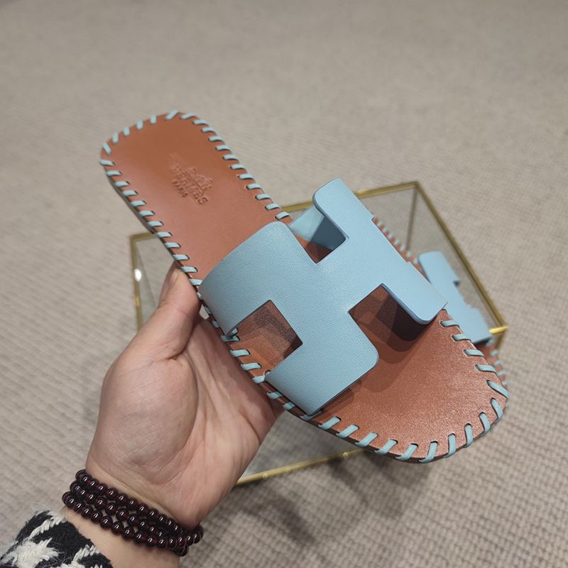 Free shipping Hermes Oran sandal copy Oran leather and canvas sandals