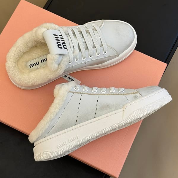 Miu Miu fake suede sneakers boa calfskin mouton