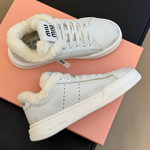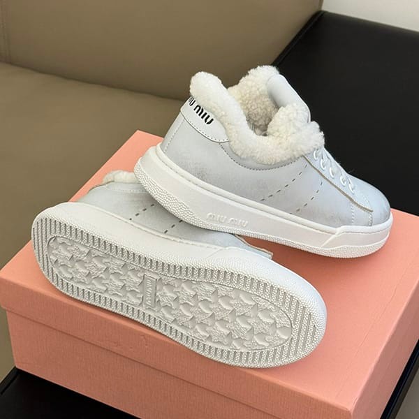 Miu Miu fake suede sneakers boa calfskin mouton