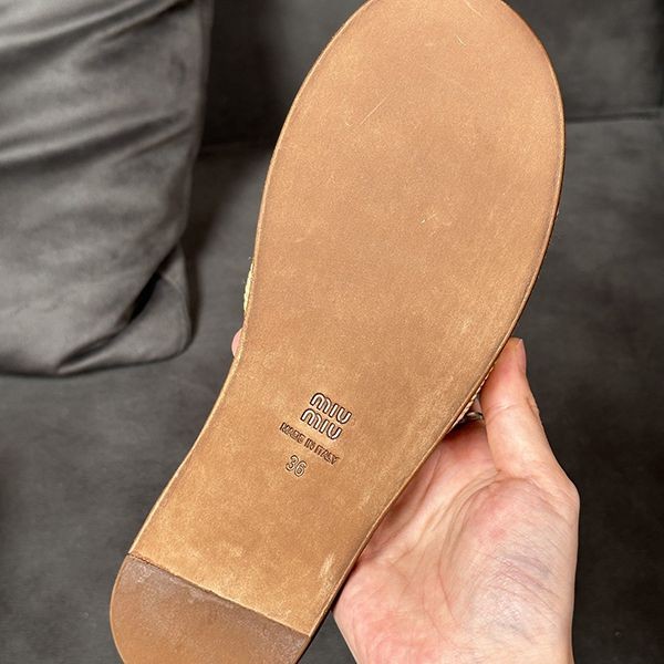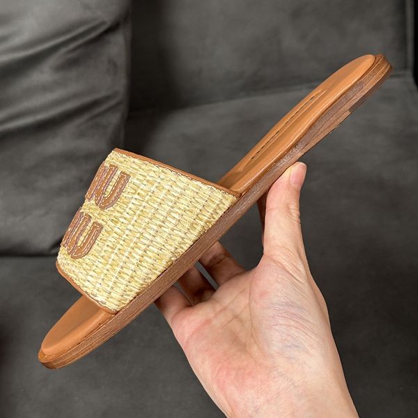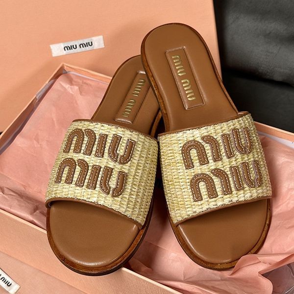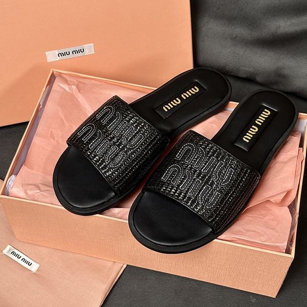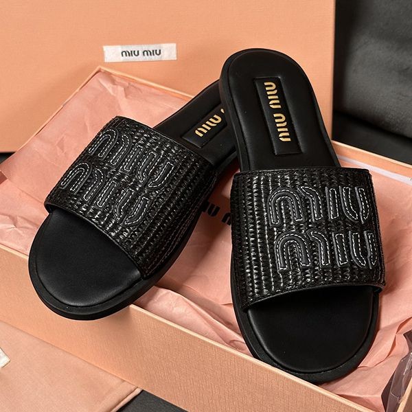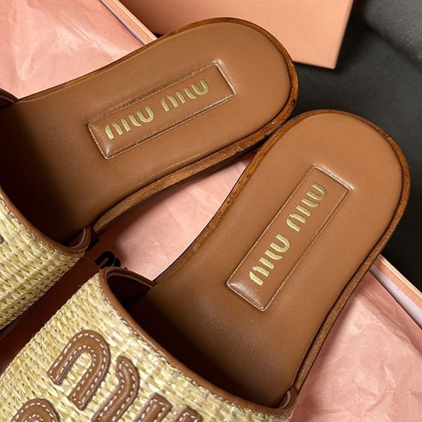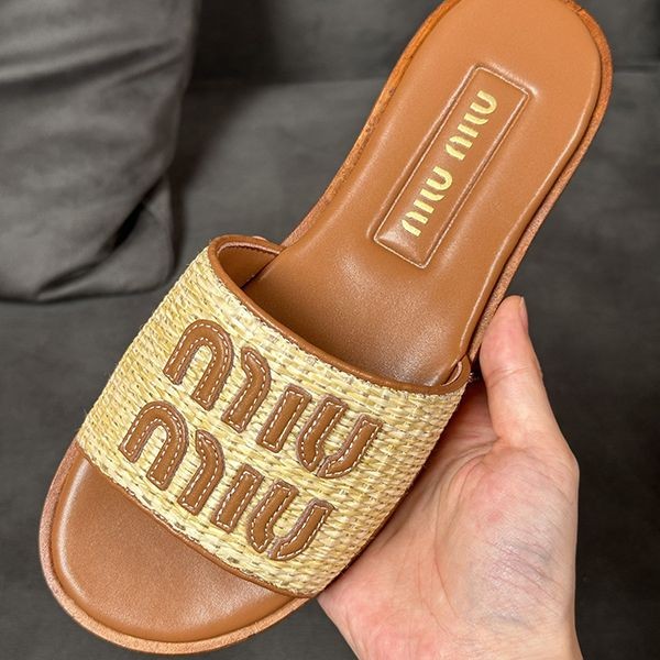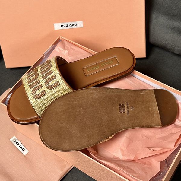 【Miu Miu】Raffia Effect Slide Sandals Copy