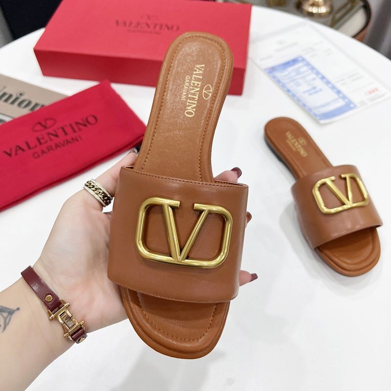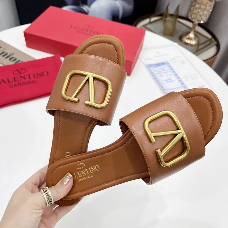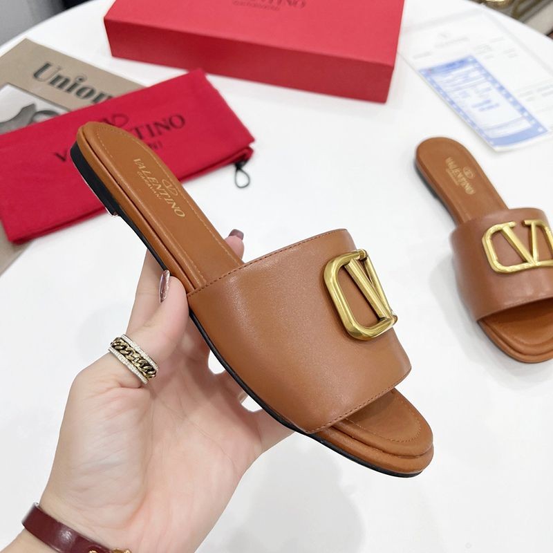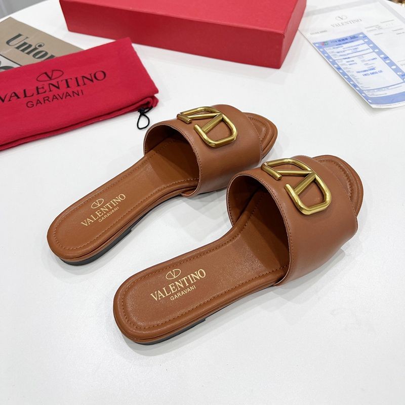 No Customs Duty ★ Valentino ★ VLOGO Leather Slide Sandals Fake
