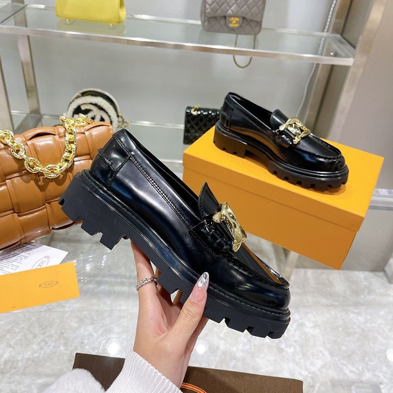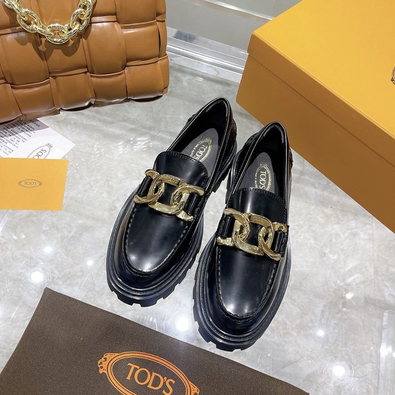 Tod's Super Copy Women's Loafers Leather T Logo Chain
