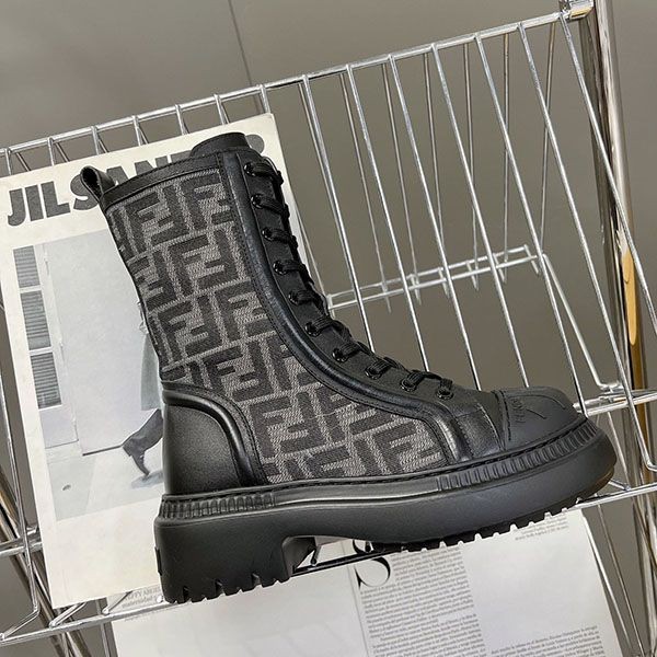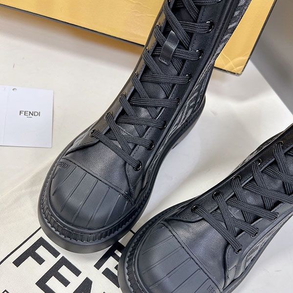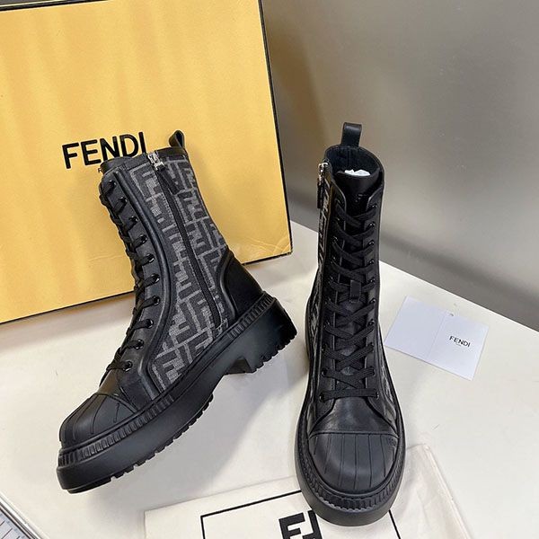 Fendi leather stretch fabric biker boots