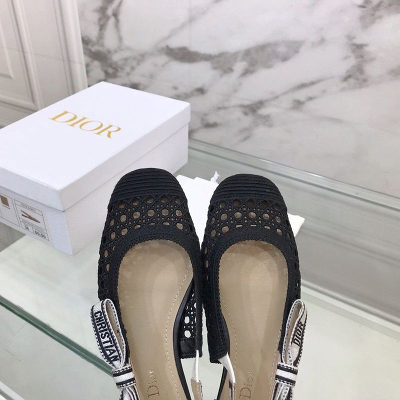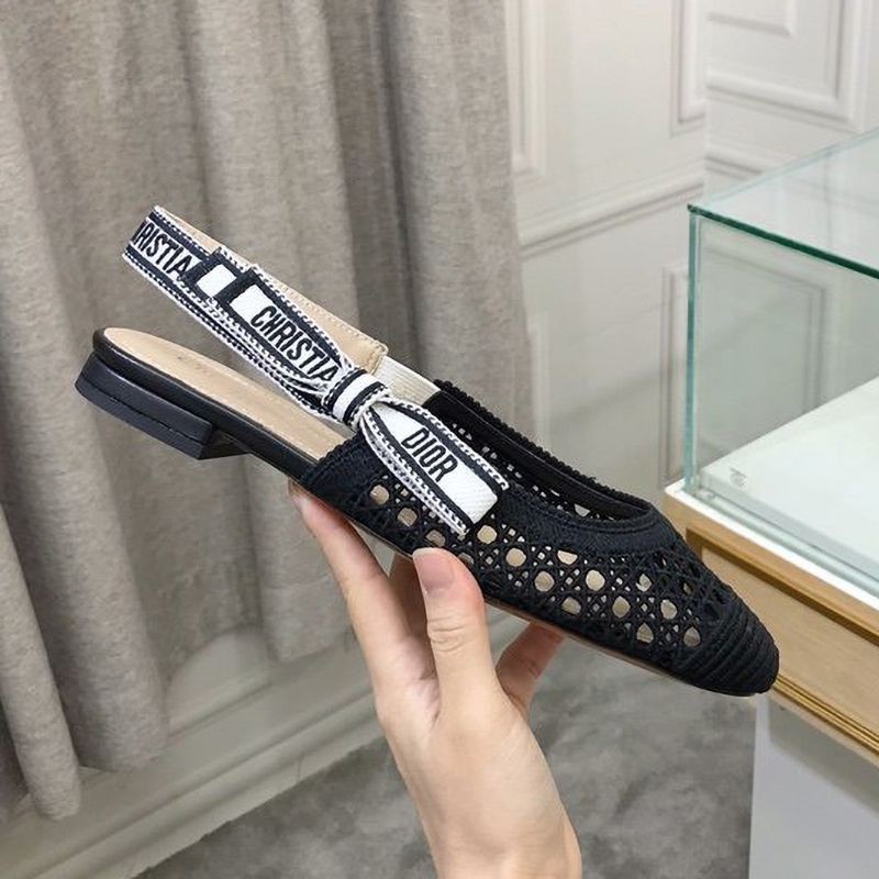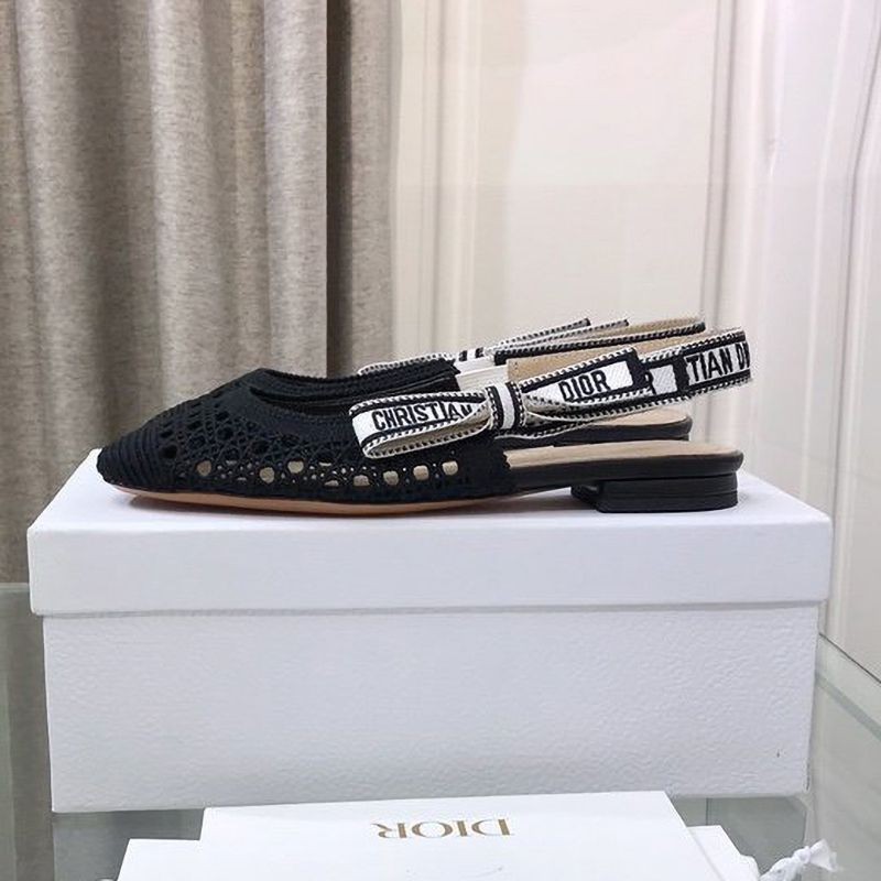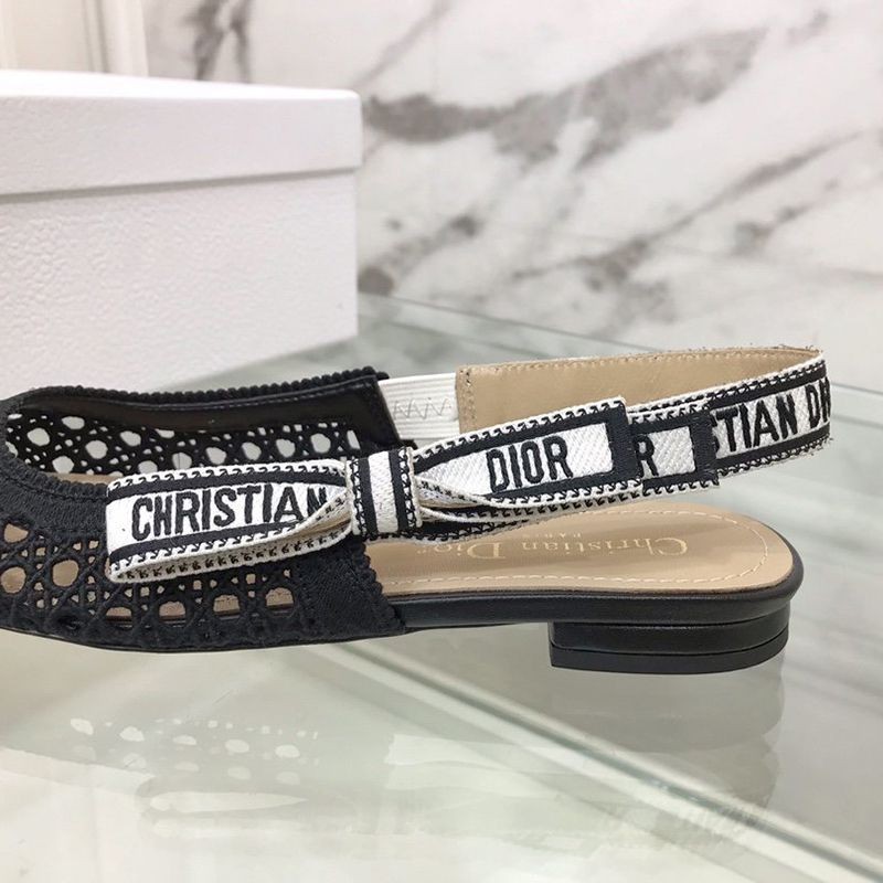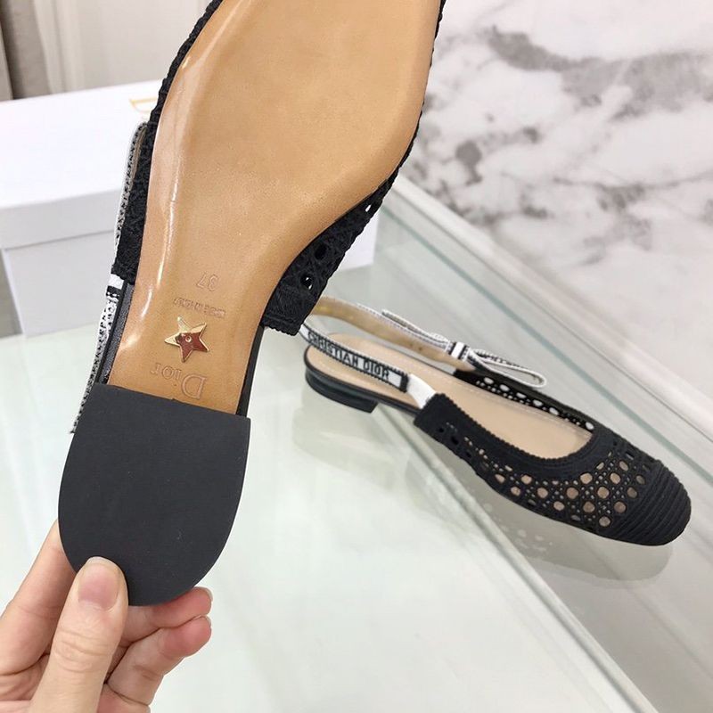 Dior & More Slingback Fake Ballet Flat Shoes★Black Cannage Embroidered Mesh