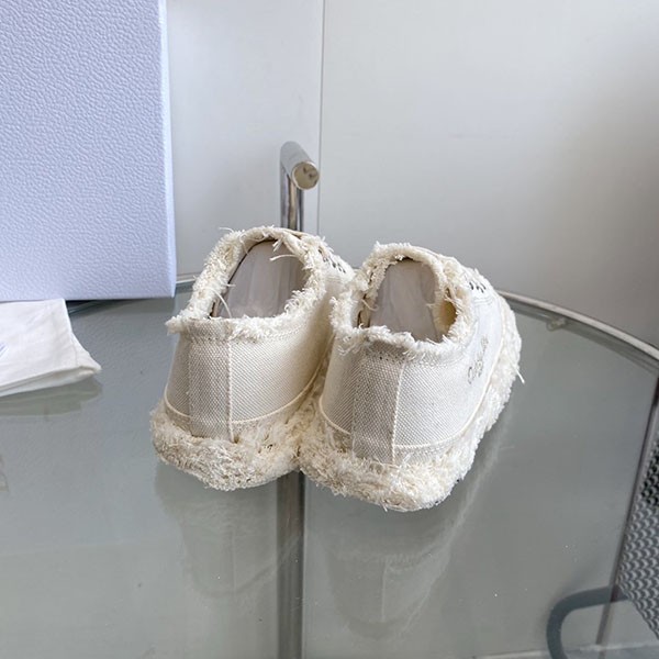 Made of frayed ecru cotton canvas, showcasing the Maison's exceptional know-how, this model features a Blake construction and a foldable heel that can be worn as a mule or closed version.