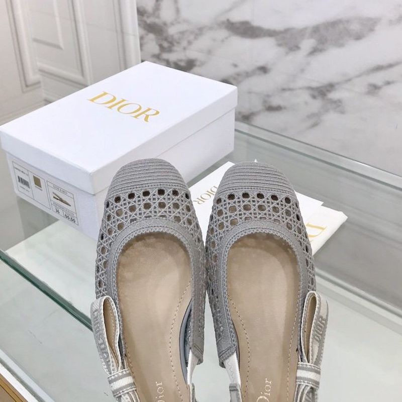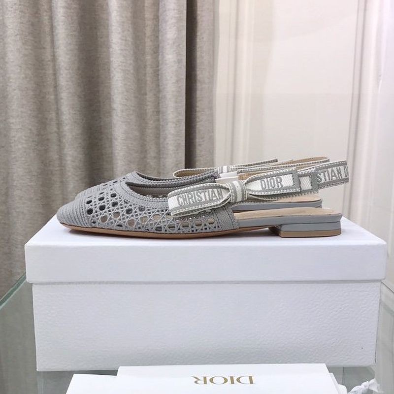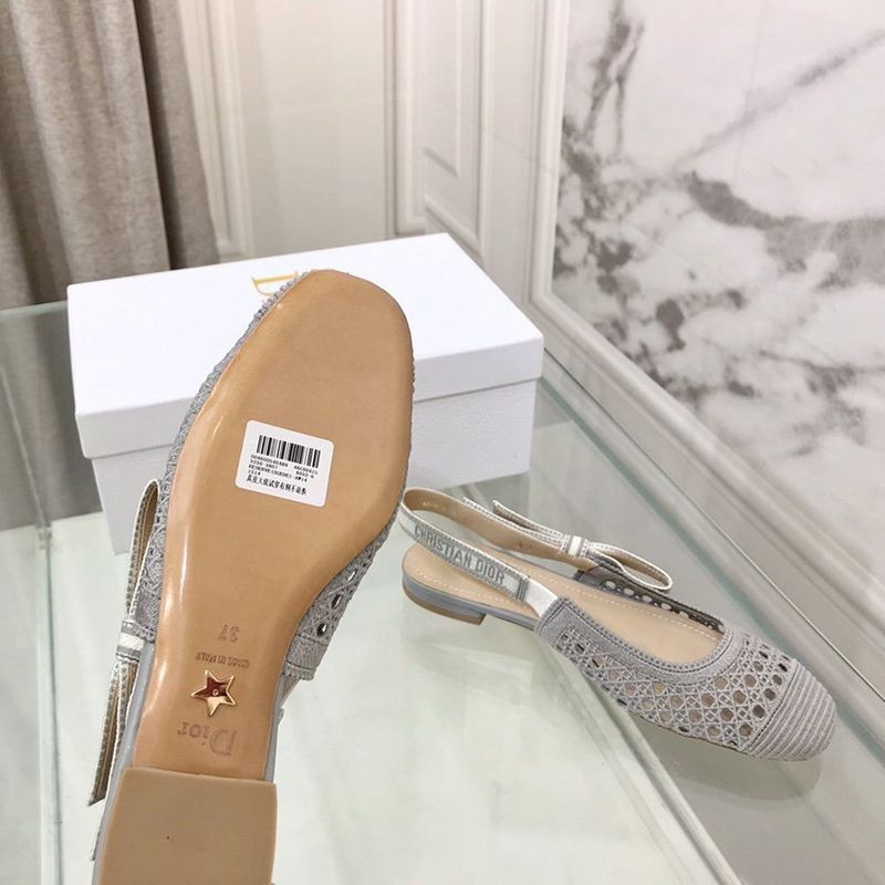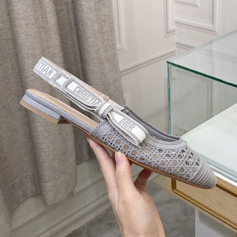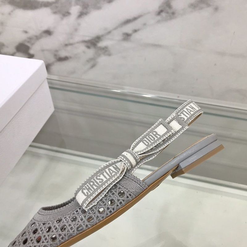 Dior & More Slingback Fake Ballet Flat Shoes★Ash Gray Cannage Embroidered Mesh