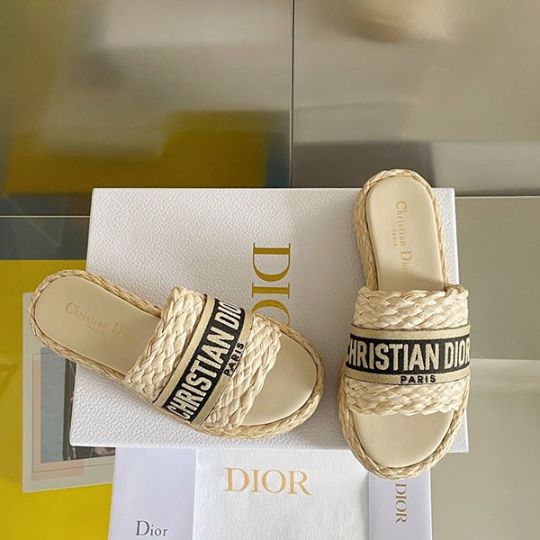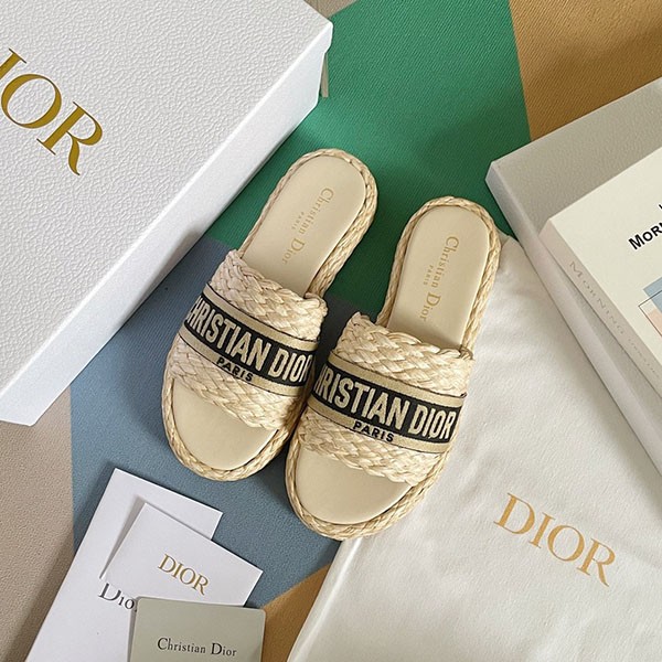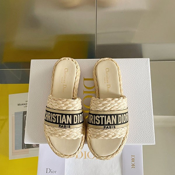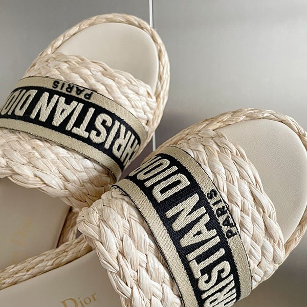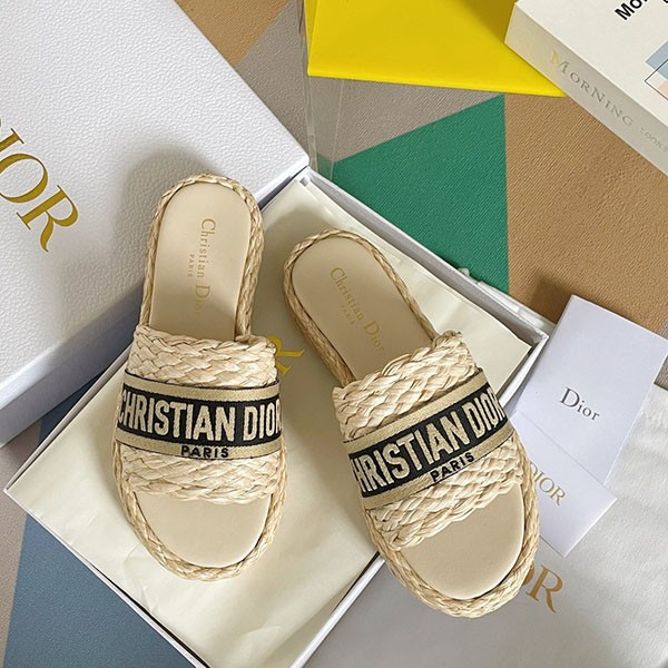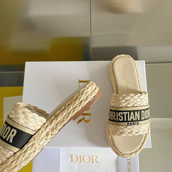 Dior Fake Raffia x Cotton Flat DWAY Mules