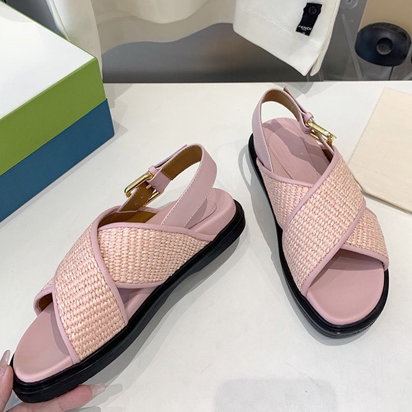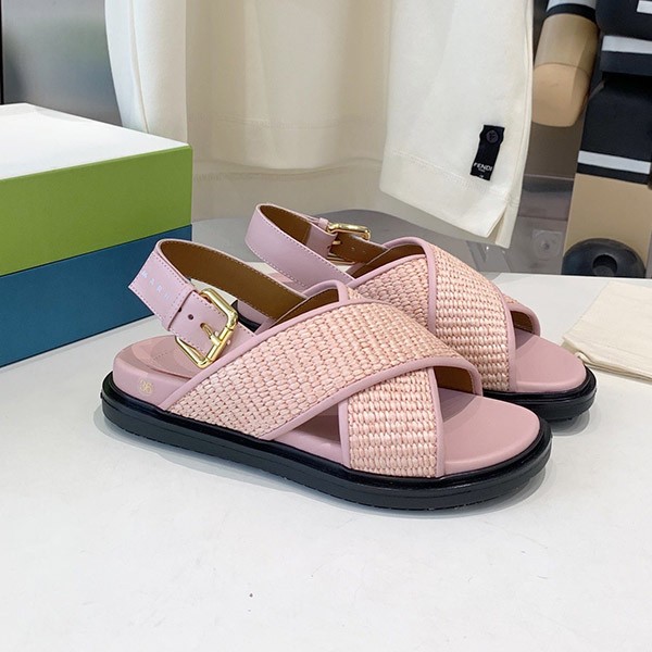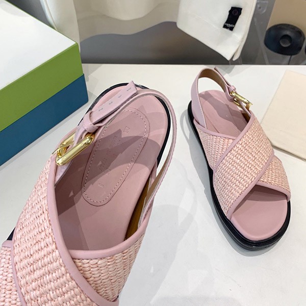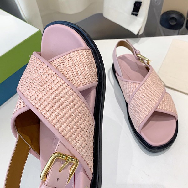 Marni Buckle Slingback Sandals Cheap Raffia & Leather