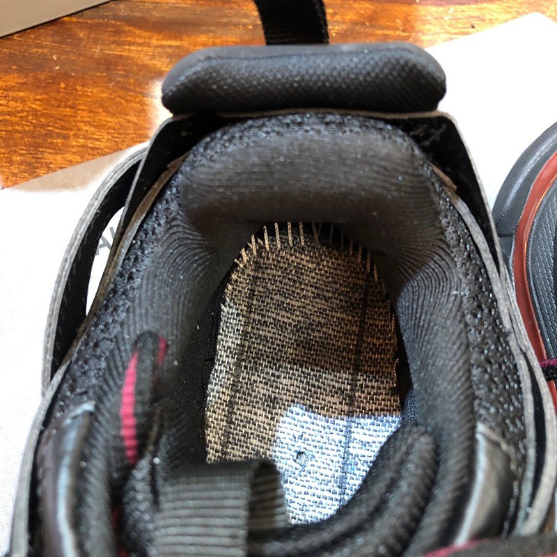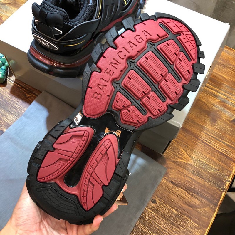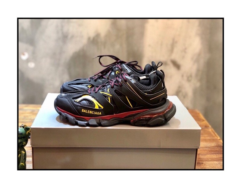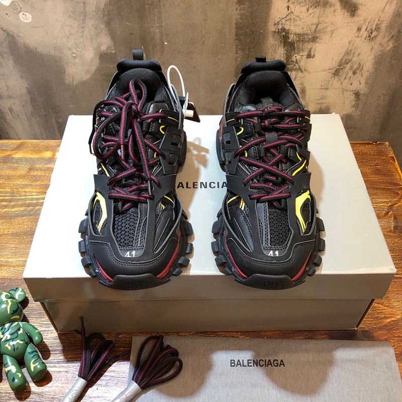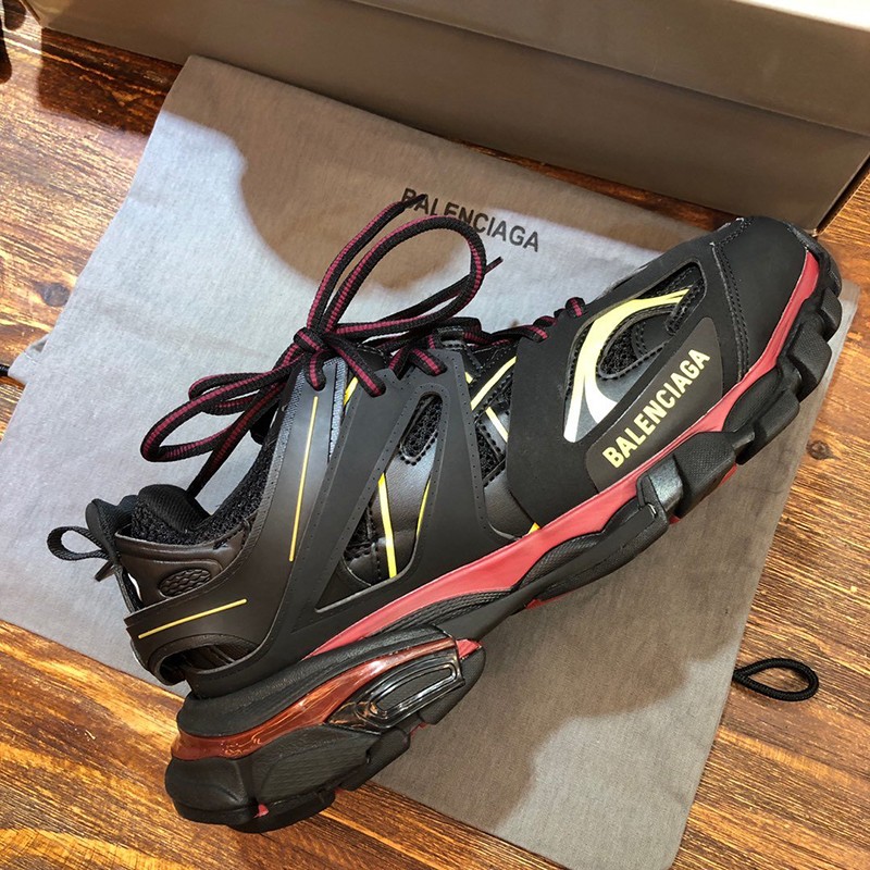 Brand: Balenciaga Fake Balenciaga Sneakers Copy Men's Popular Track Trainers Hard to Find Colors Men's Fashion Shoes Boots Sandals Sneakers Track is a mesh and nylon sneaker without any leather Size embroidery on the toe Track embossed logo on the back of the heel BB embossed logo on the front of the outsole Balenciaga logo print on the outside Balenciaga embossed logo on the tongue Double laces with standard tying Pull-on tabs on the back and tongue Dynamic sole design with thick back for propulsion 50mm arch Wash effect for a vintage look Wipe with a soft clean cloth Material composition: 50% polyester, nylon 50%