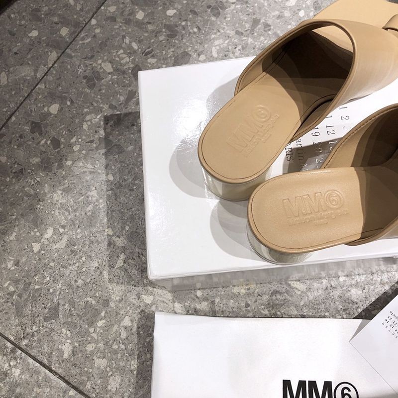 Maison Margiela Replica 6 Logo Heel Mule Sandals Nappa Leather