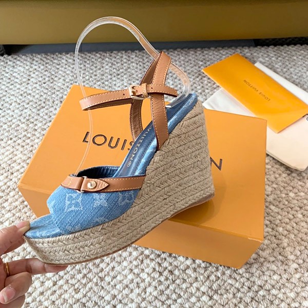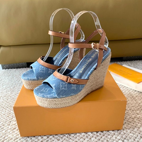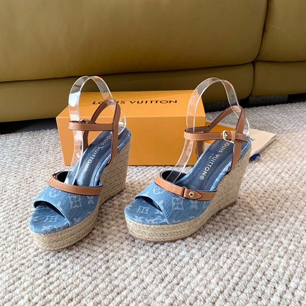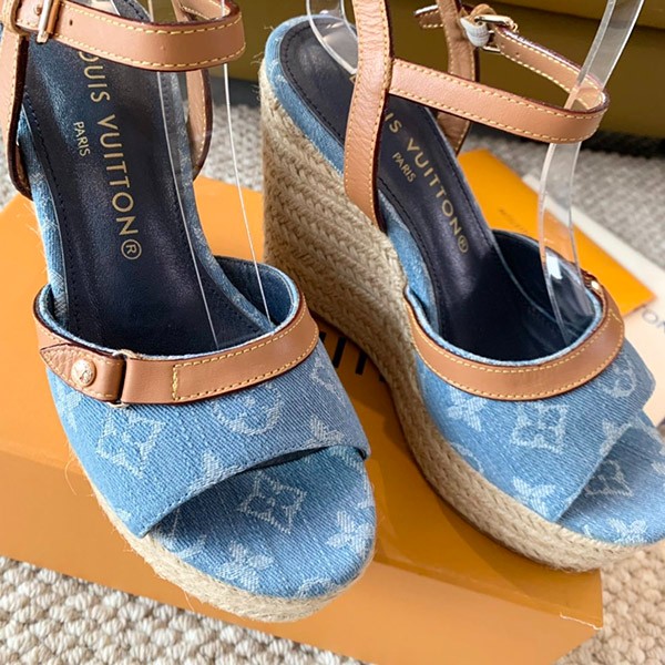 【New!!Louis Vuitton denim sandals, cheap, thick sole, 1ACIZV
