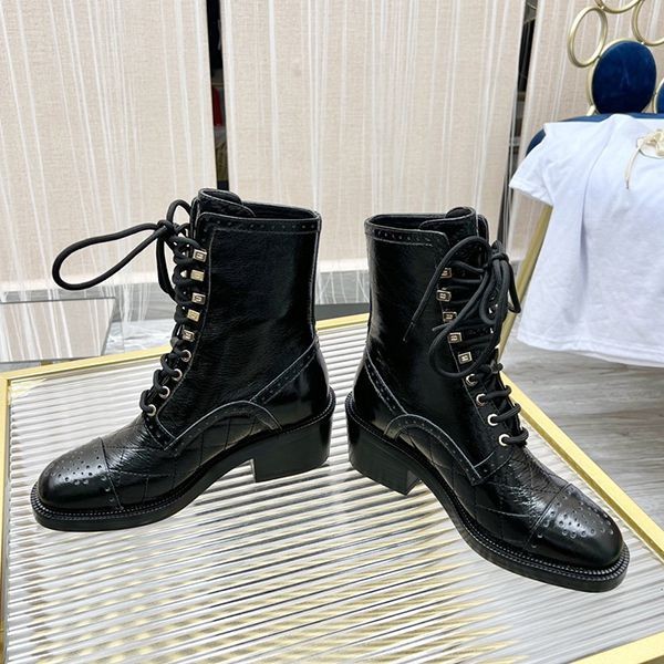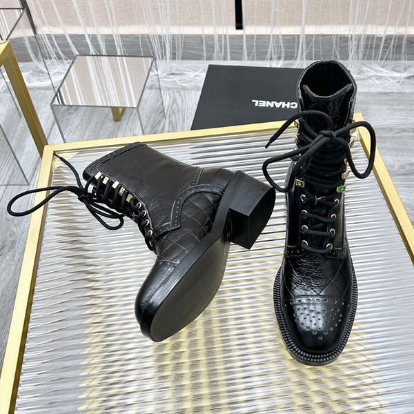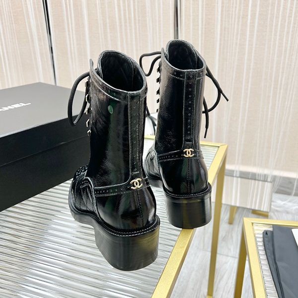 Chanel Replica Lace-up Leather Ankle Boots