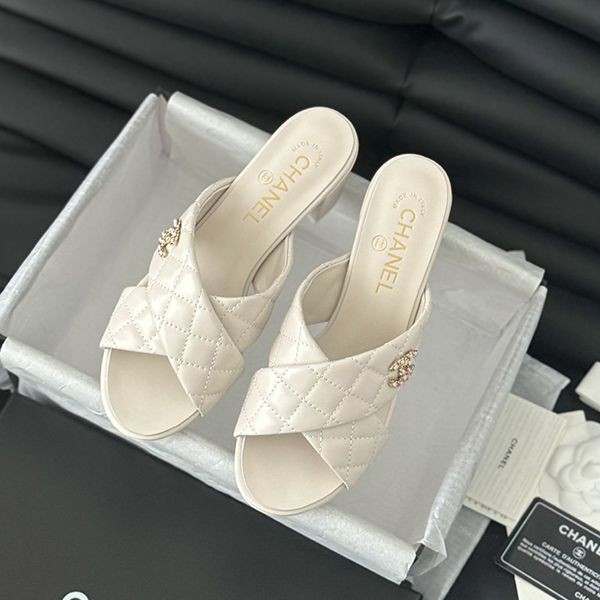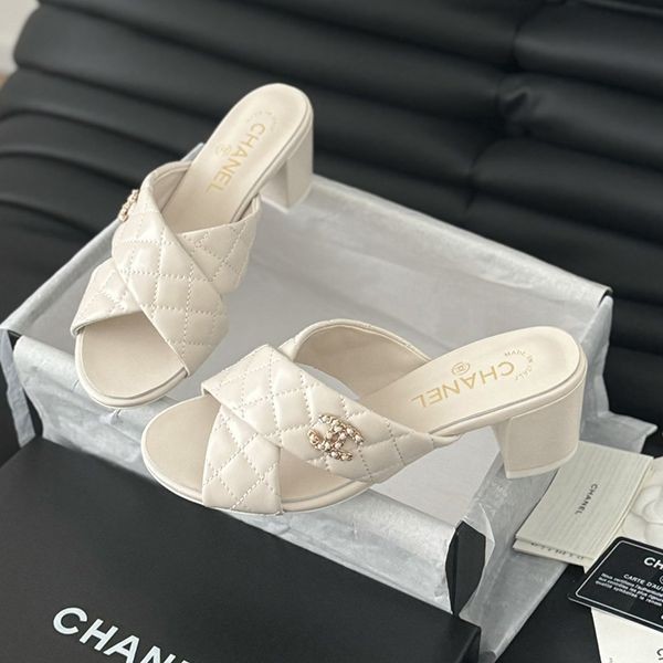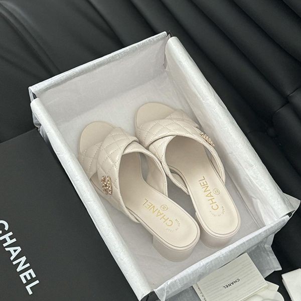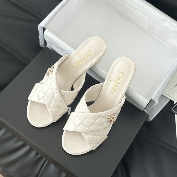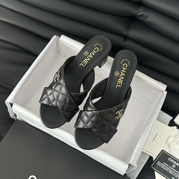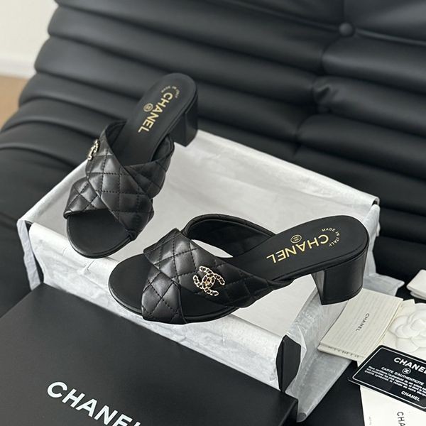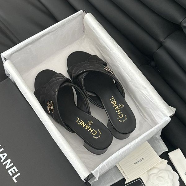 24s new Chanel chain double C chunky heel sandals replica