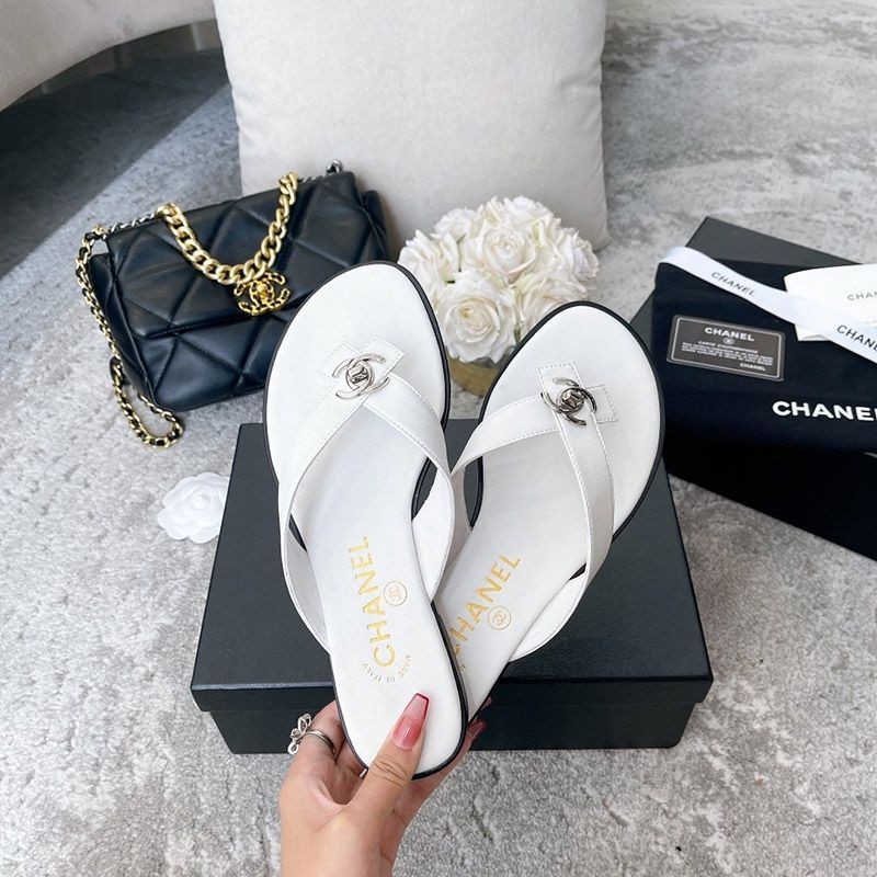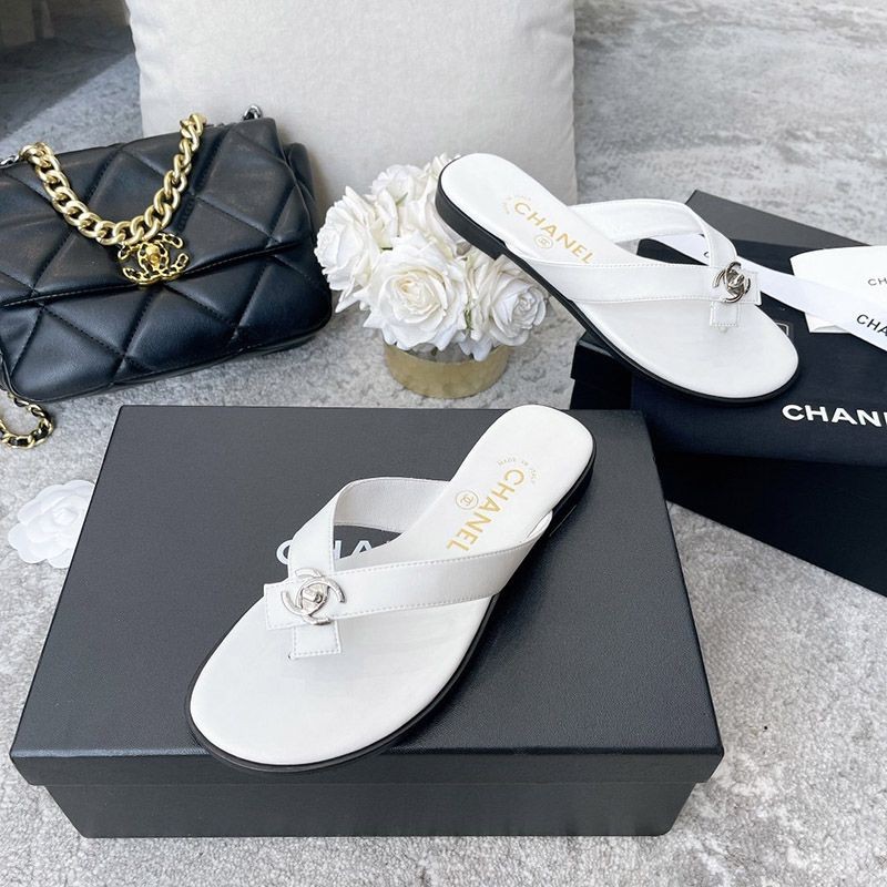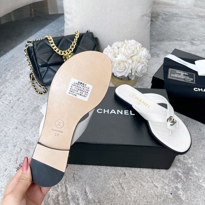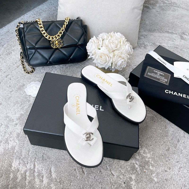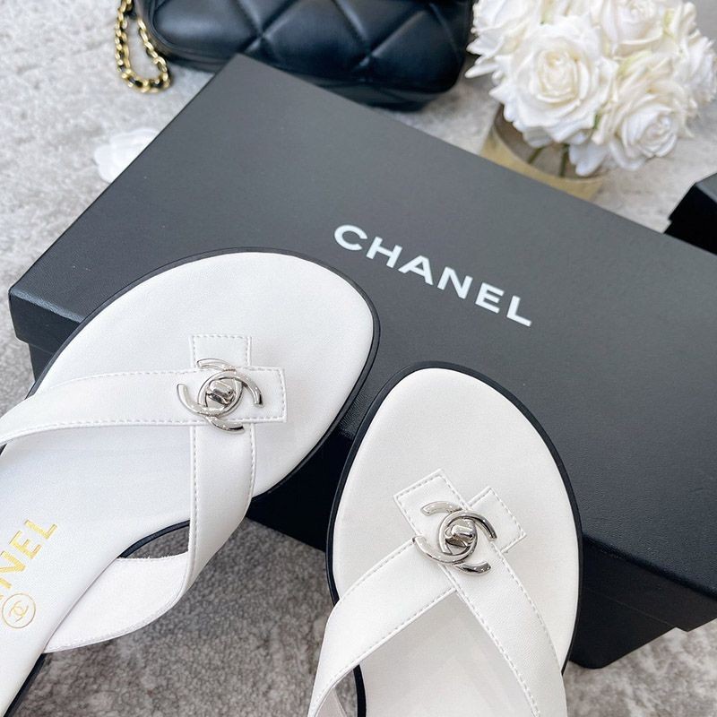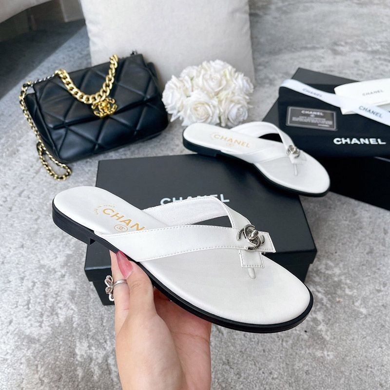 Chanel sandals with a CC logo designed with pearls that give off a neat and elegant luster.