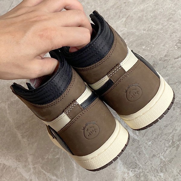 This time, the Air Jordan 1 is used as the base, with brown as the main color. The heel is engraved with the letters Cactus Jack, and the liner has something like a pocket for storing bills.