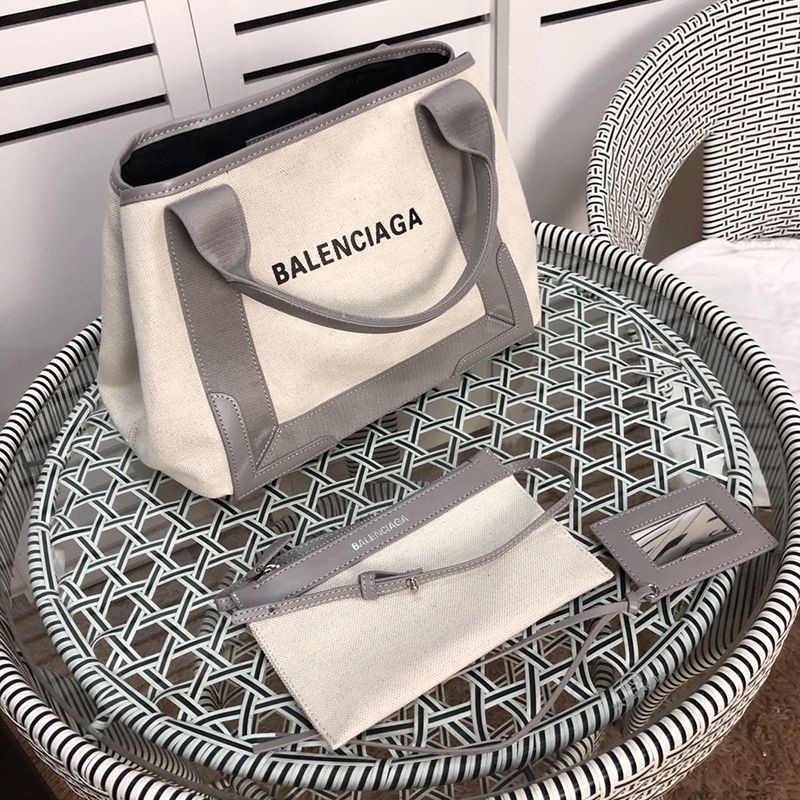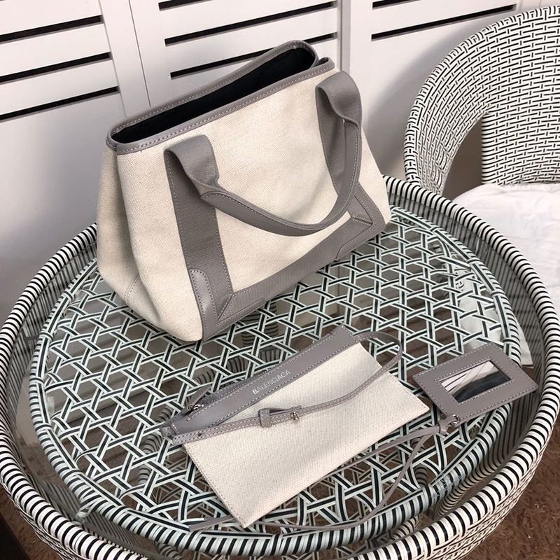 Balenciaga Navy Cabas Replica S Tote Beige x Gray