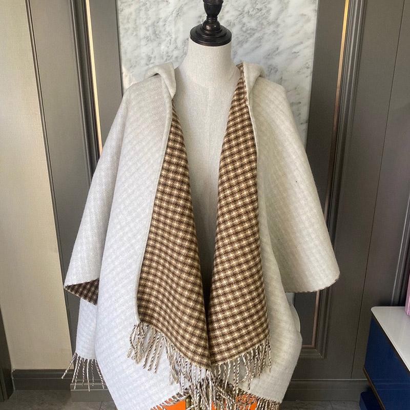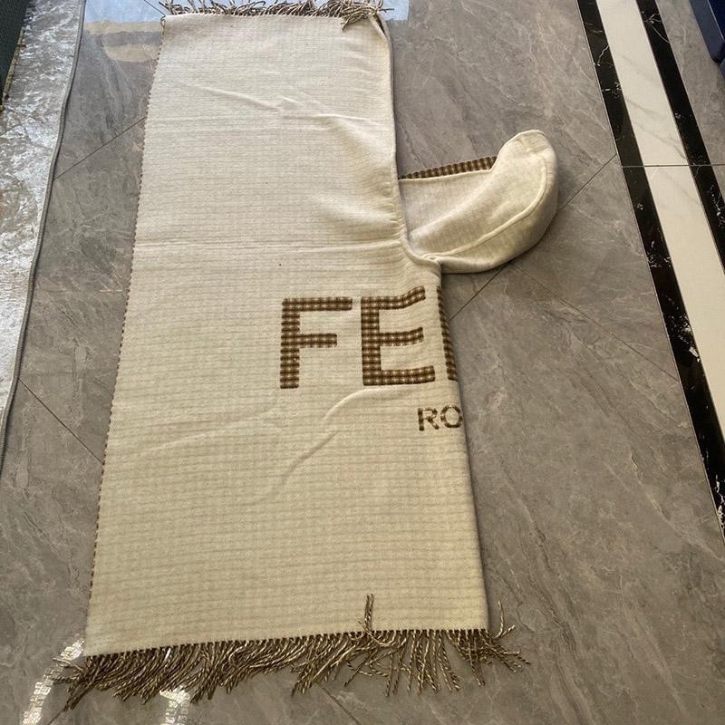 Wide, enveloping poncho with fringed edges. Made of beige wool. Finished with oversized jacquard Fendi lettering on the back.