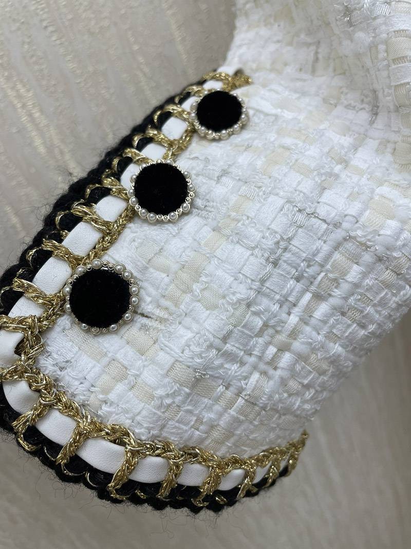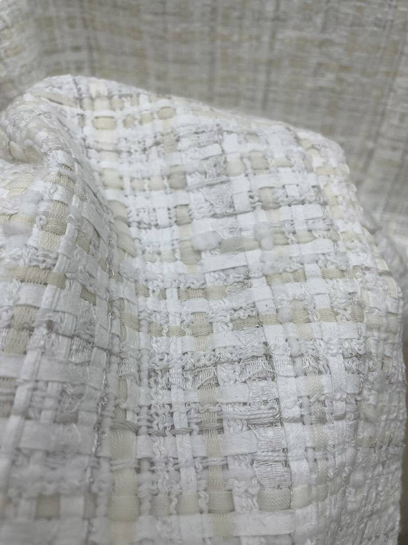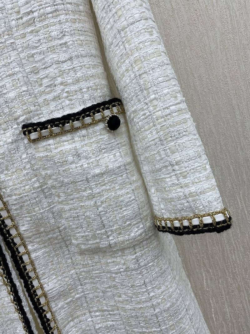 Introducing a coat made of tweed material with double buttons.