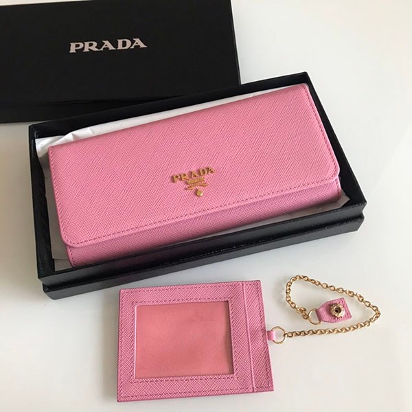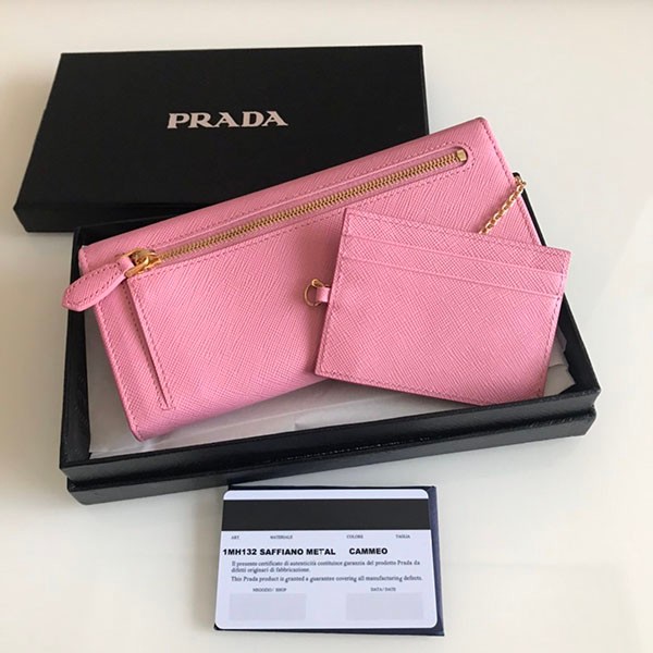 Prada Long Wallet with Coin Purse and Replica Pass Case Logo Leather