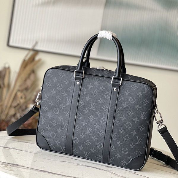 Brand: Louis Vuitton Replica Louis Vuitton Porte Document Voyage Replica M46457 Men's Fashion - Bags, Purses - Business Bags, Attache Cases Product Specifications: 36.5 x 27.5 x 6 cm (Width x Height x Depth) Material: Monogram Eclipse Canvas Trimming: Leather (Cowhide Leather) Lining: Textile Metal fittings (Silver color) Zip closure Removable luggage tag Front flat pocket Padded interior compartment Two interior flat pockets Strap: Removable, adjustable Length from top of strap to top of bag (shortest): 44.0 cm Length from top of strap to top of bag (longest): 55.0 cm