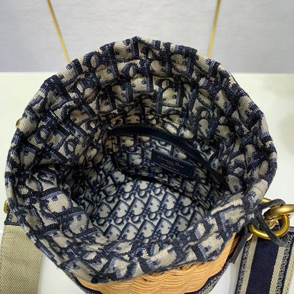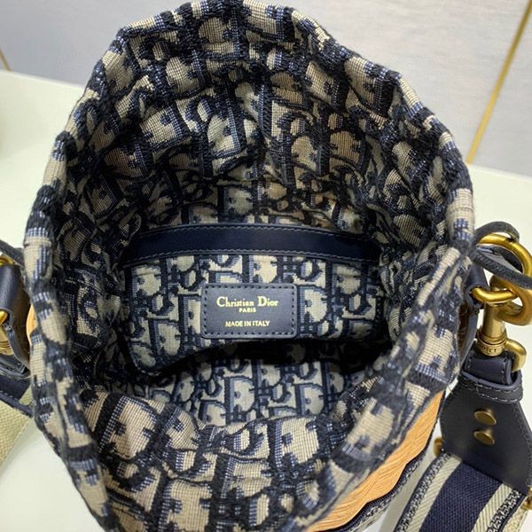 Blue "Dior Oblique" jacquard on the inside with leather drawstring