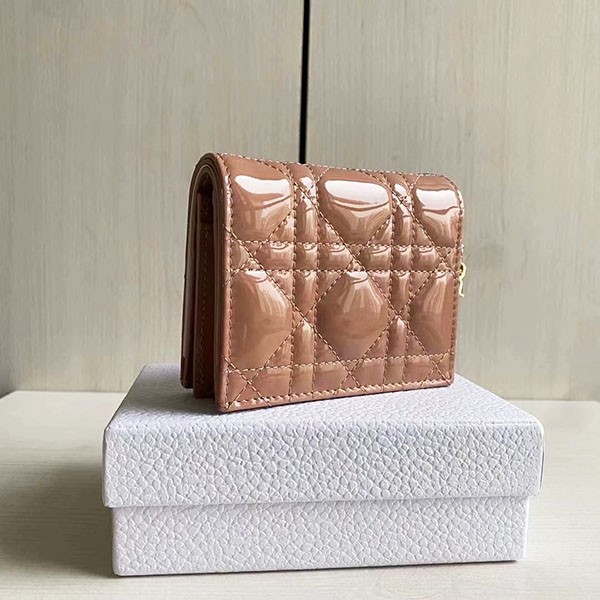 Lady Dior replica mini wallet patent calfskin bi-fold S0178OVRB_M49P