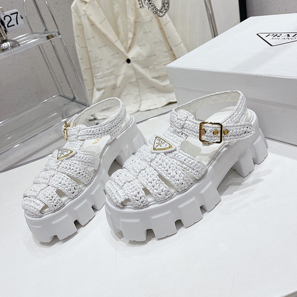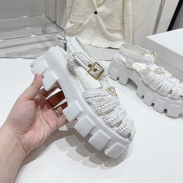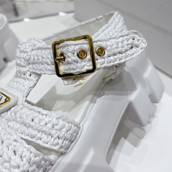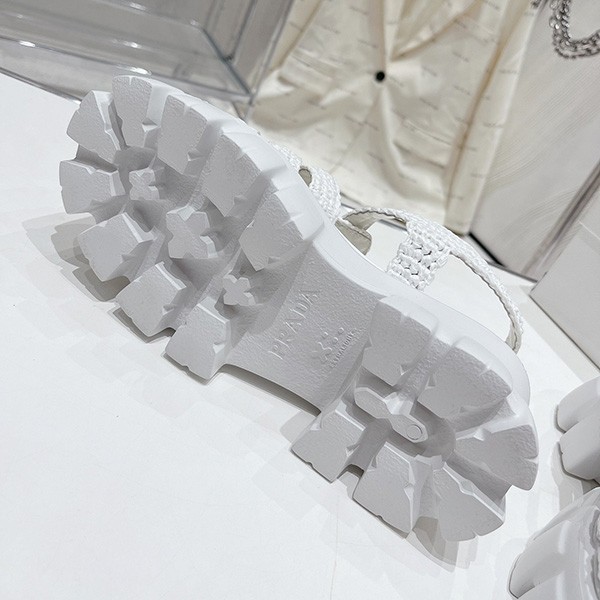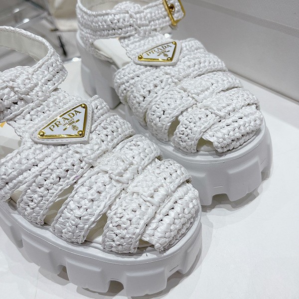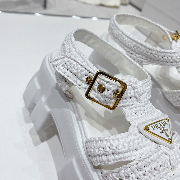 Prada copy Monolith raffia sandals with triangle logo