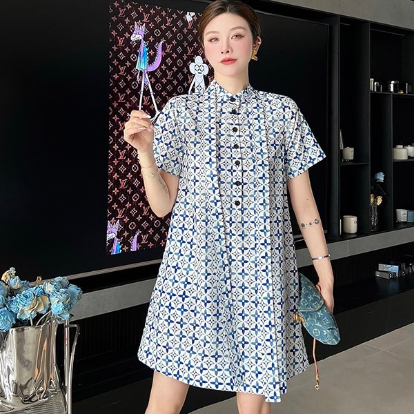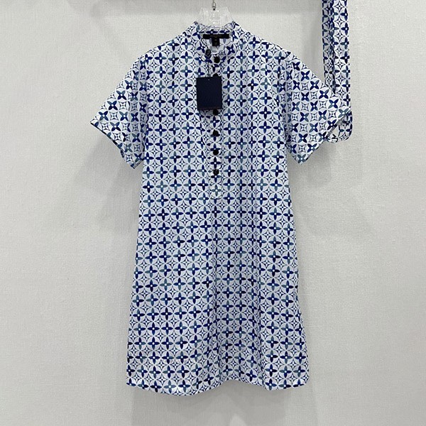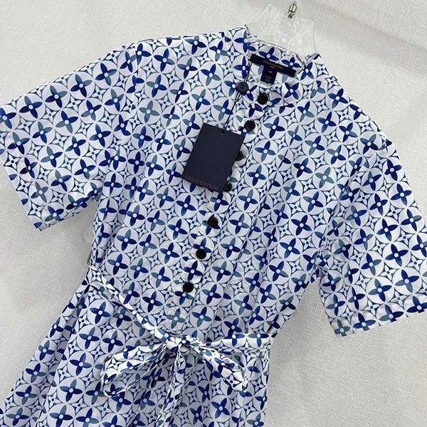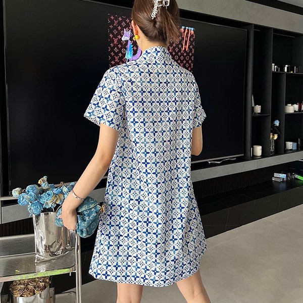 Louis Vuitton Replica Stripe Accent Monogram Shirt Dress