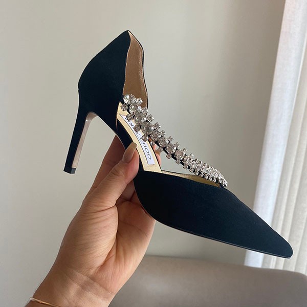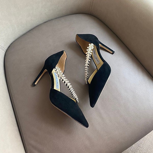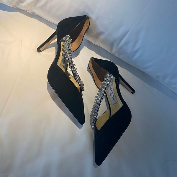 Jimmy Choo Fake Bee 85mm★Crystal Suede Pumps