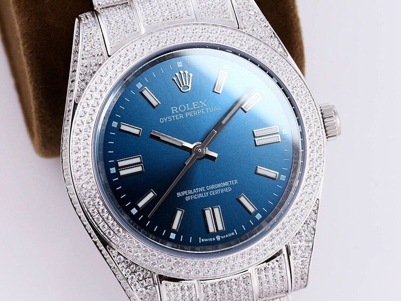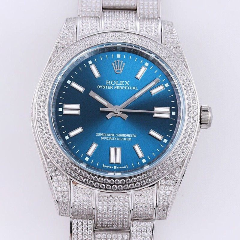 Rolex Oyster Perpetual 41 Blue Full Diamond Men's