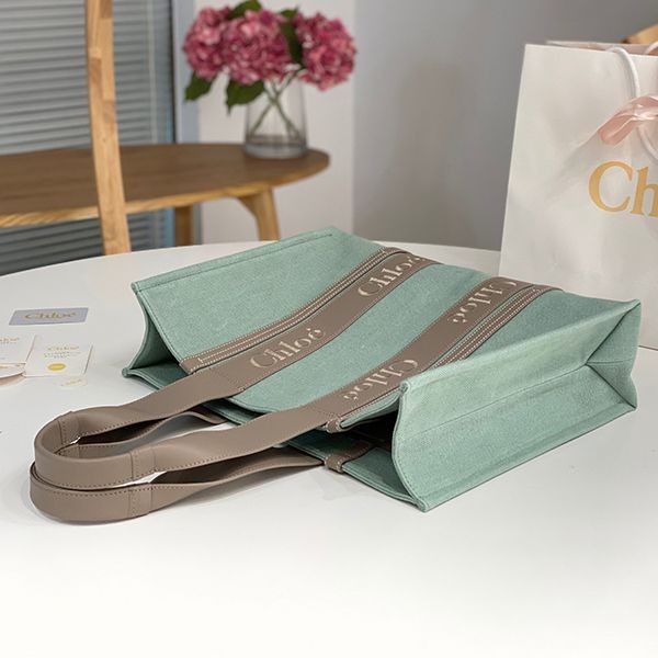Chloe Woody Fake Medium Canvas Tote Bag
