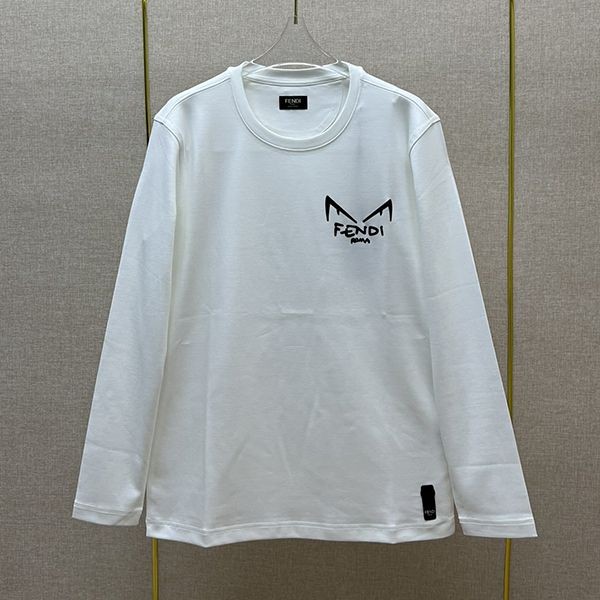 Fendi Azure Embroidered FF Long Sleeve Crew Neck T-Shirt Fake