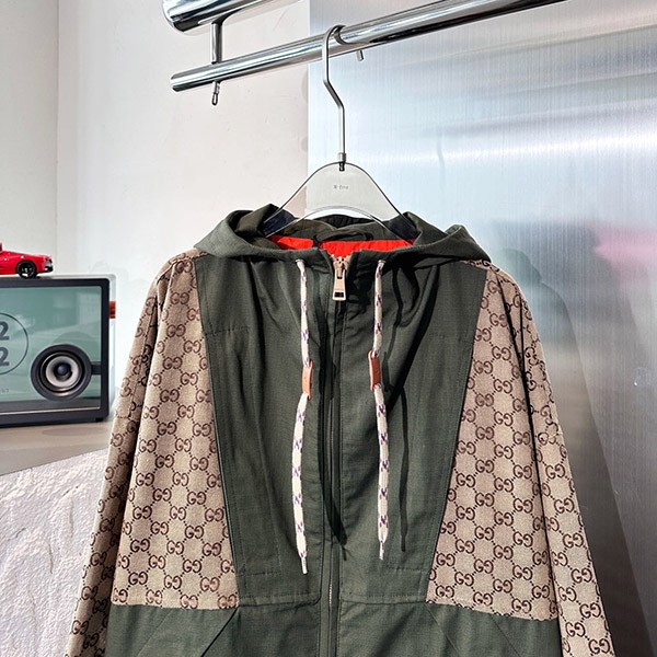 This season's must-have! Gucci GG Cotton Canvas Zip Jacket Replica