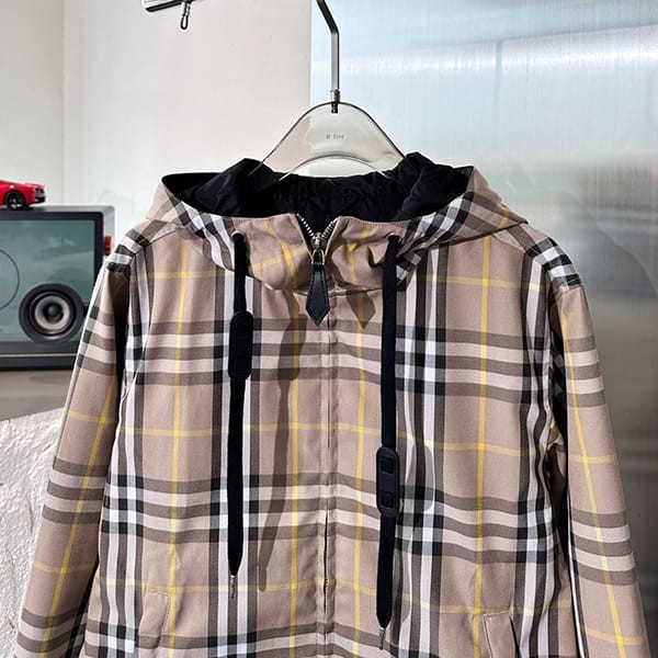 Lightweight hooded jacket in Burberry check.