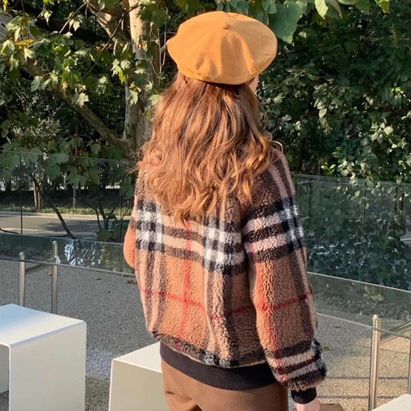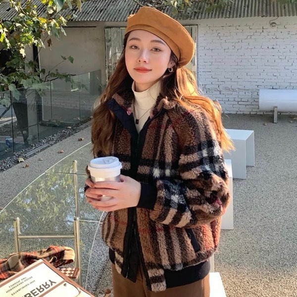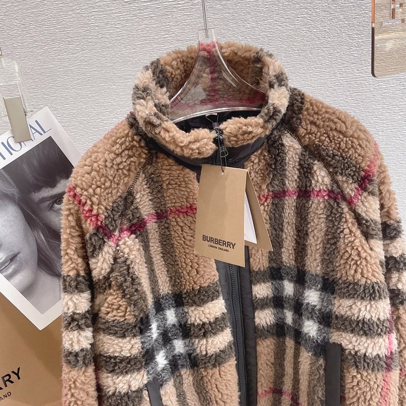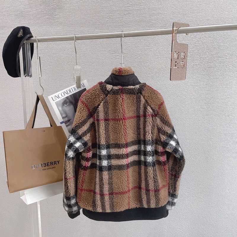 Burberry☆Brown Check Pattern Cashmere Wool Fleece Jacket Replica