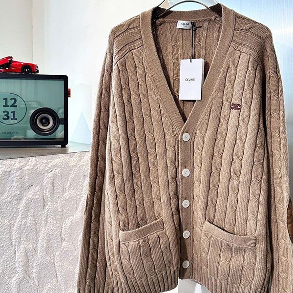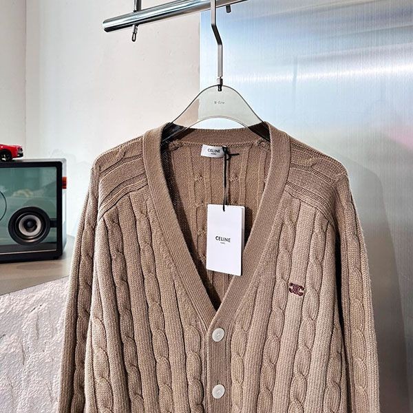 Celine Triomphe cable knit replica cashmere cardigan