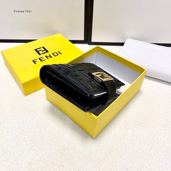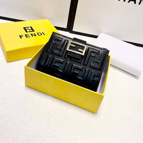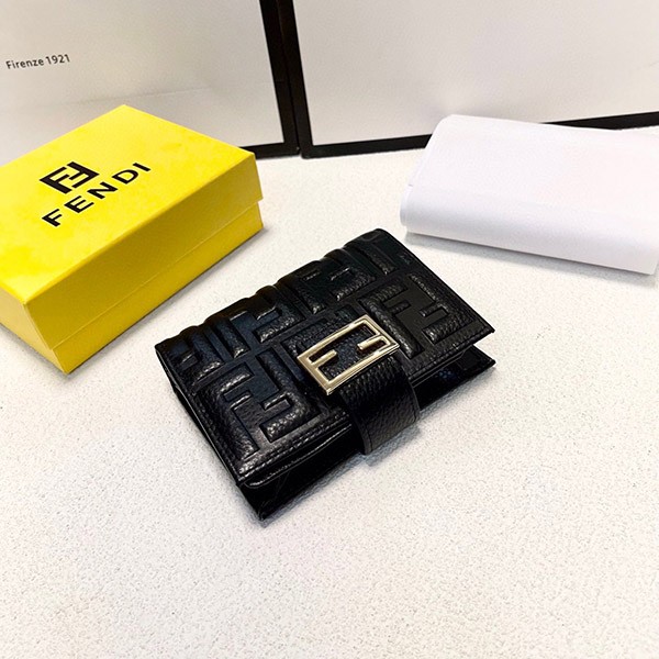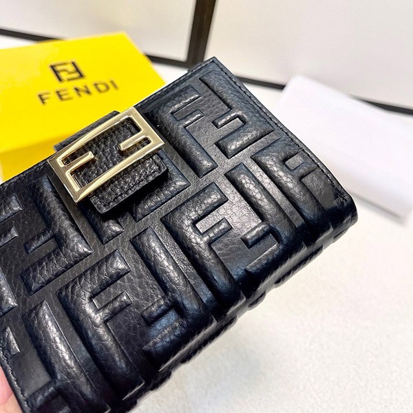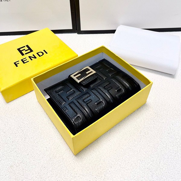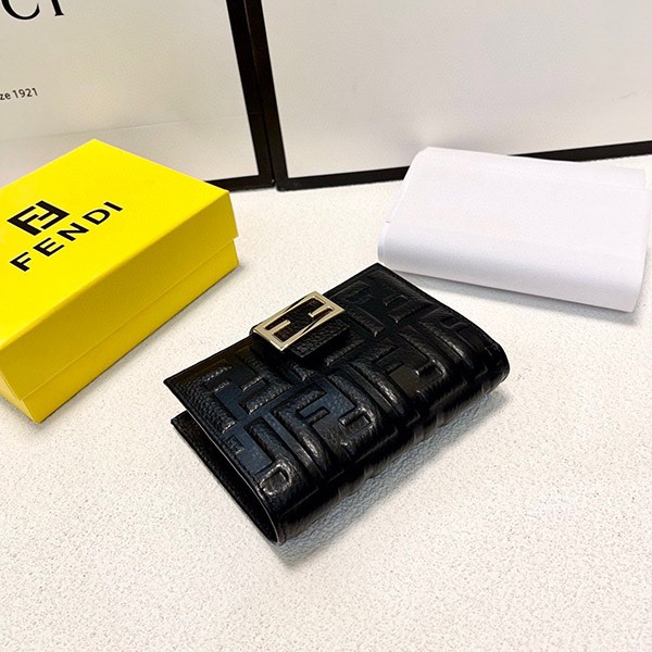 Fendi replica embossed FF logo lamb nappa leather micro tri-fold wallet