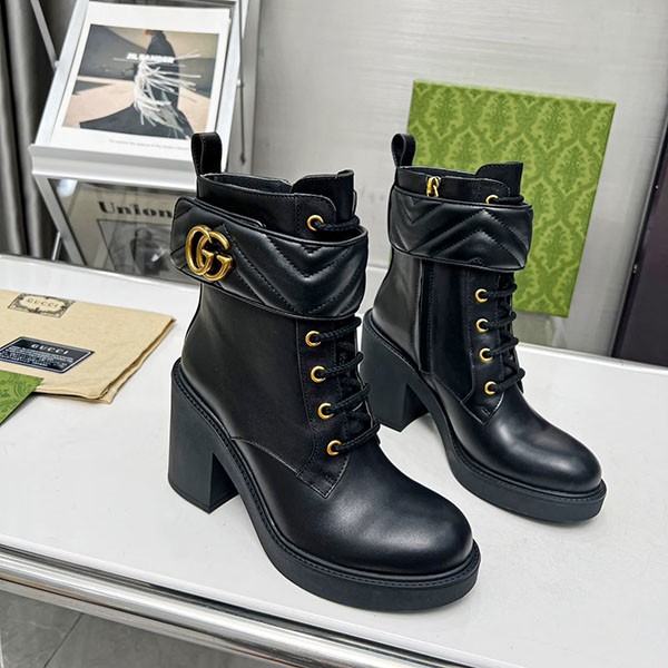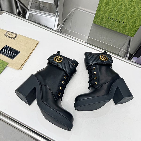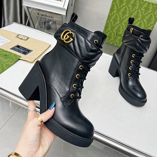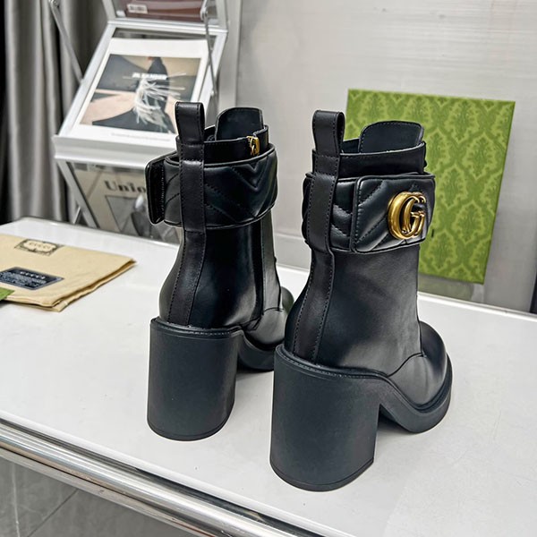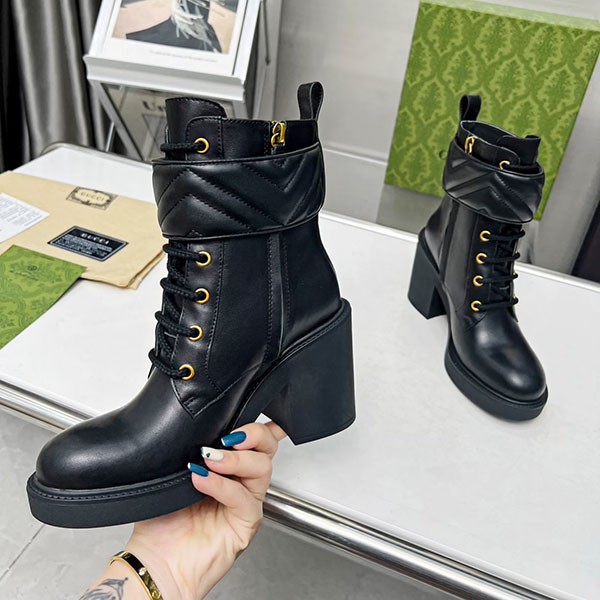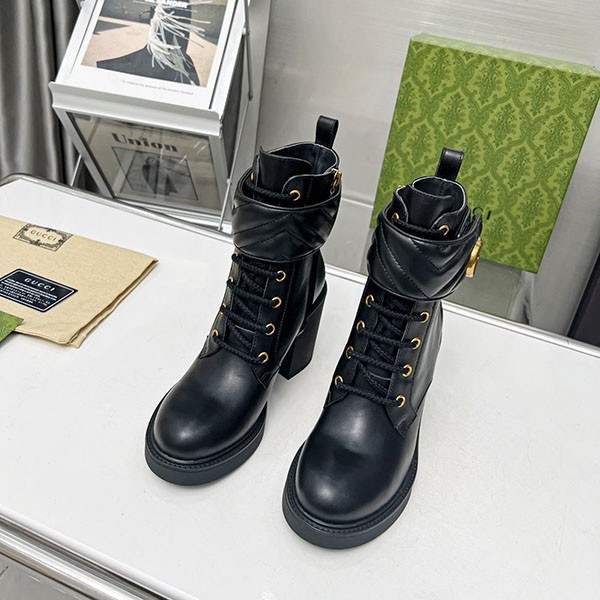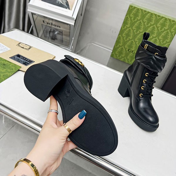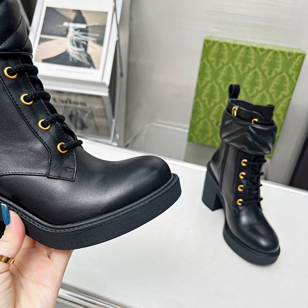 Gucci Copy Genuine Leather★Leg Lengthening Effect★Combat Ankle Boots